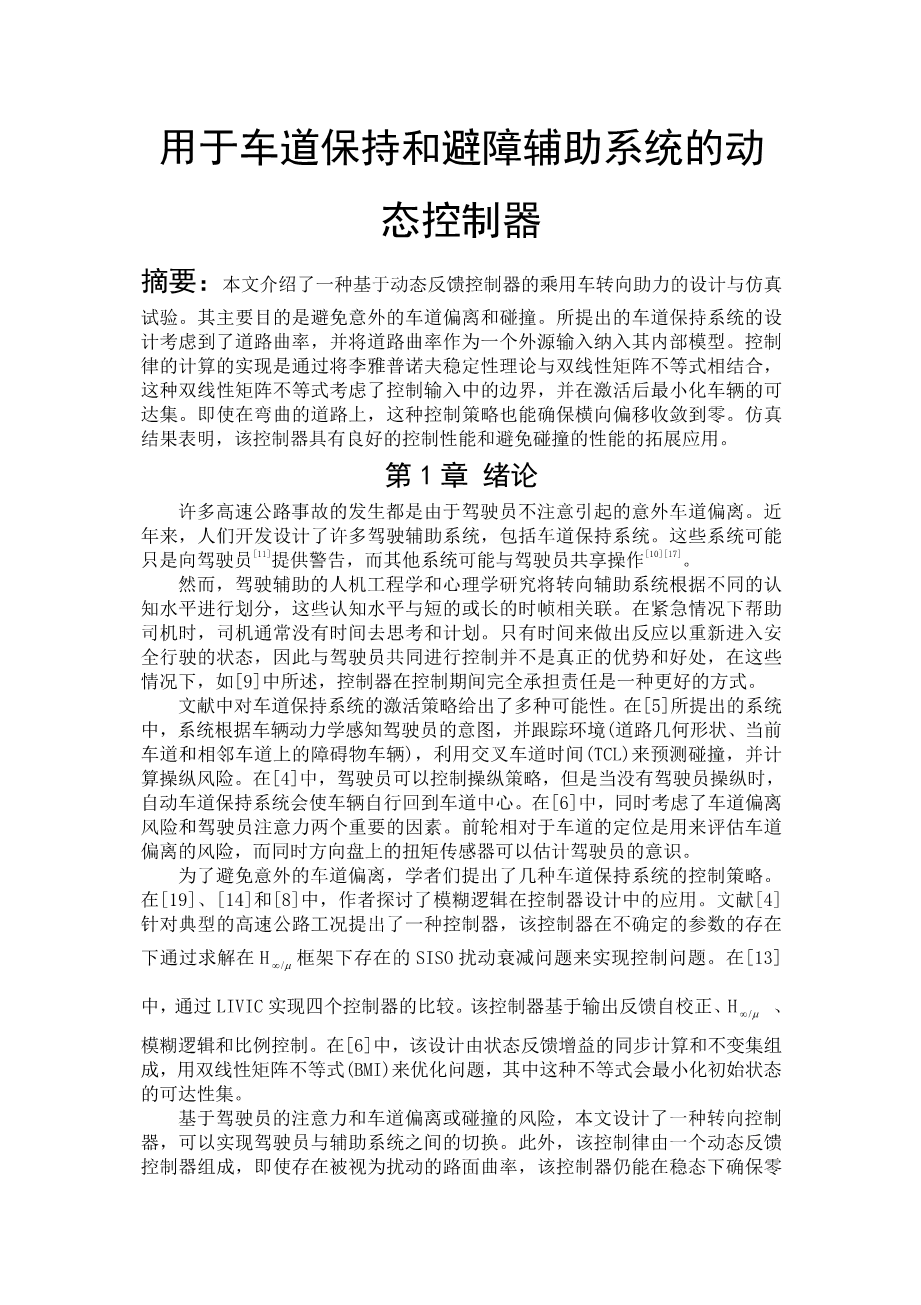 车道保持控制算法研究外文翻译资料 2021-12-12 21:36:03 英语原文共 6 页 英语原文共 14 页资料编号:[5598] 原文和译文剩余内容已隐藏,您需要先支付 30元 才能查看原文和译文全部内容!立即支付 发小红书推广免费获取该资料资格。点击链接进入获取推广文案即可: Ai一键组稿 | 降AI率 | 降重复率 | 论文一键排版 PREVIOUS NEXT 您可能感兴趣的文章 噪音和振动测量外文翻译资料 主动式横向稳定杆在车辆平顺性和稳定性上的应用外文翻译资料 干摩擦离合器系统的应力与变形分析外文翻译资料 电动转向模拟器的虚拟样机外文翻译资料 主动前转向系统控制策略研究外文翻译资料 横向冲击对汽车乘客颈椎反应的三维分析.外文翻译资料 对机车意外事故中新型胸腔安全系统的评估外文翻译资料 电动车动力传动系统性能分析解析算法的发展外文翻译资料 扁钢表面缺陷的自动检测:综述外文翻译资料 非线性规划二:无约束优化技术外文翻译资料