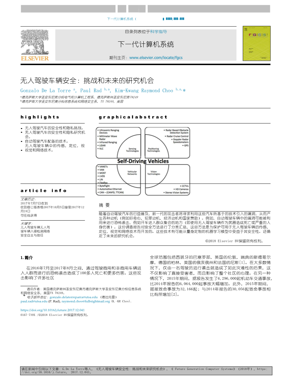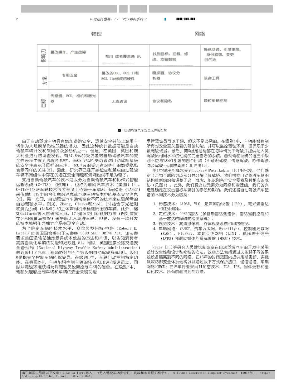 无人驾驶车辆安全:挑战和未来的研究机会外文翻译资料