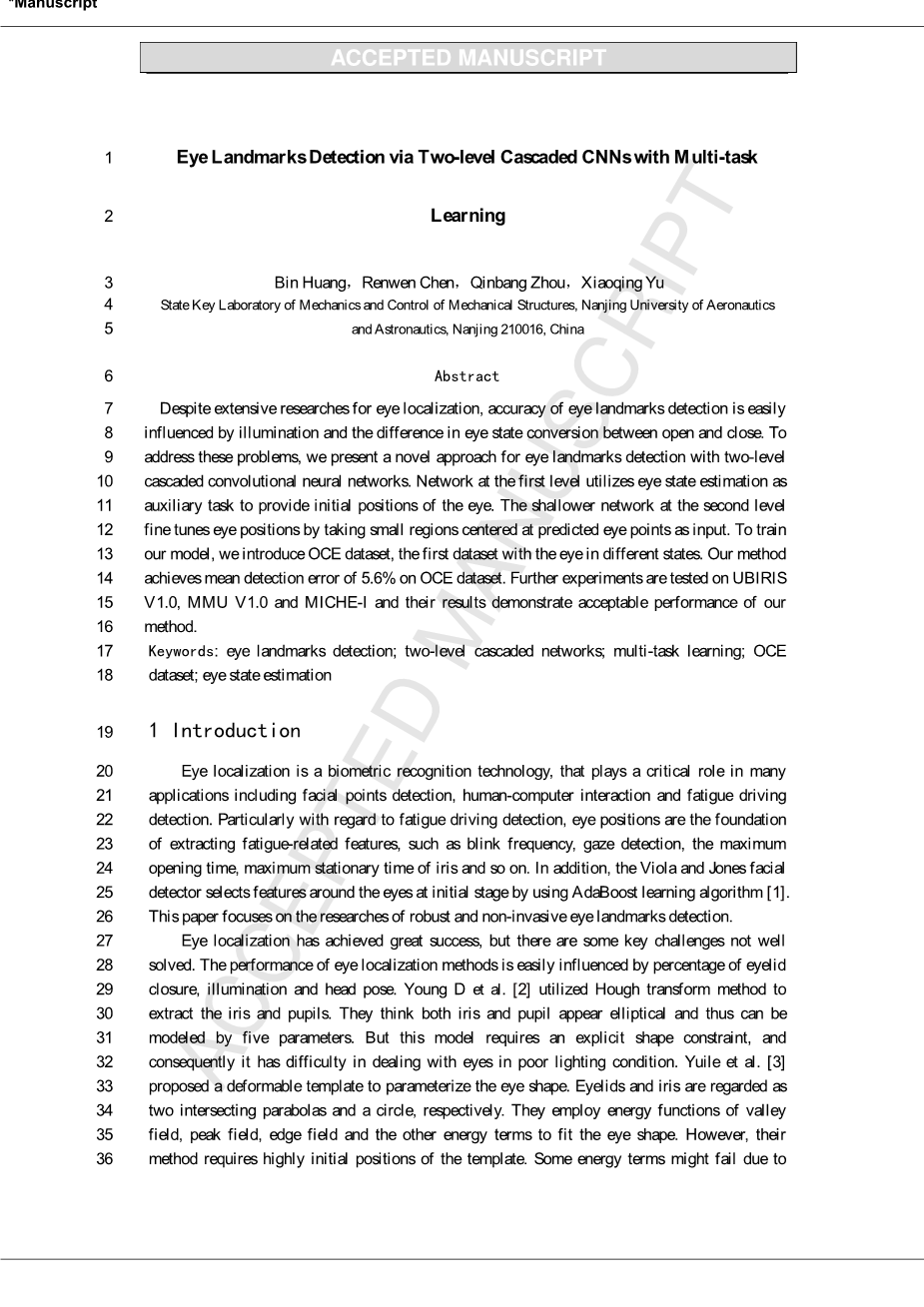 关键词:眼部特征点检测;两级级联网络;多任务学习; OCE 数据集;眼睛状态估计