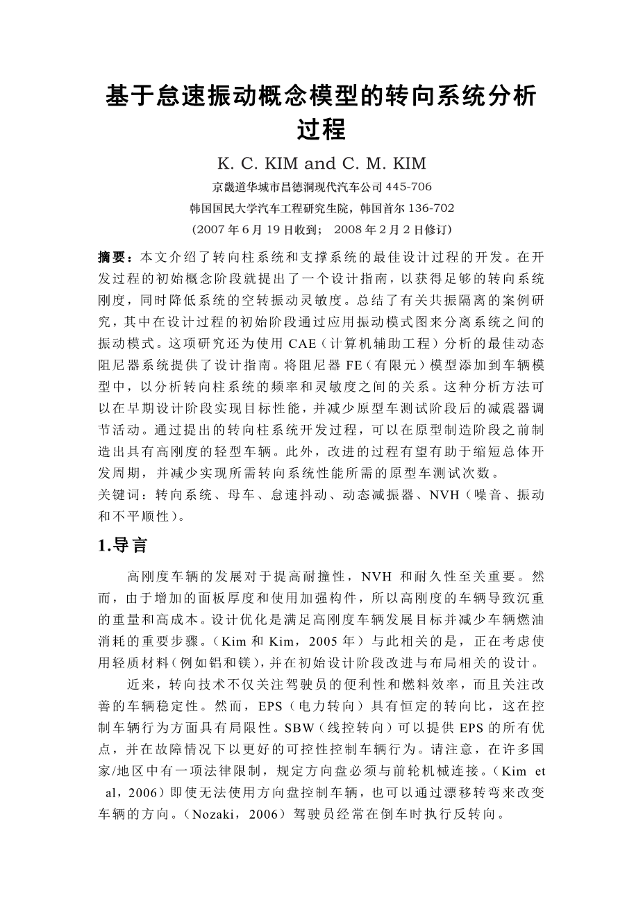 基于怠速振动概念模型的转向系统分析 过程外文翻译资料