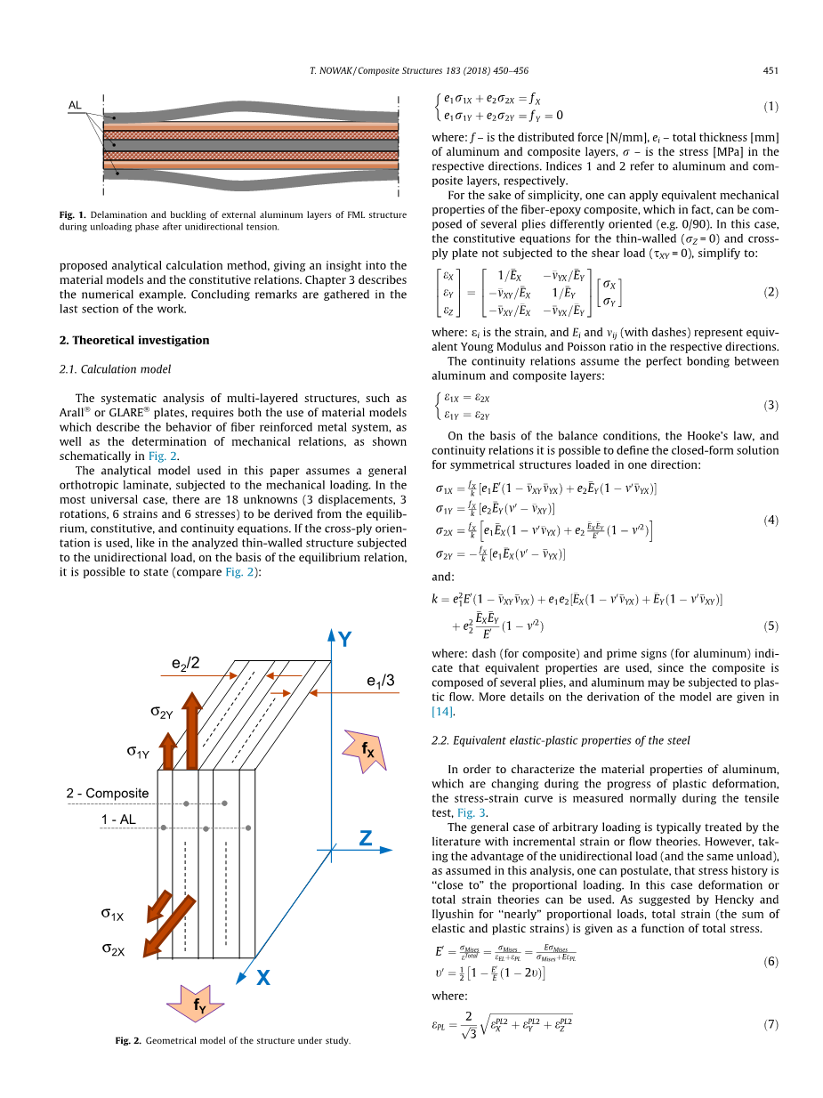 多层结构的系统分析,如Arall或GLARE的分析,既需要能描述纤维增强金属系统行为的材料模型,也需要确定力学关系,如图2所示。