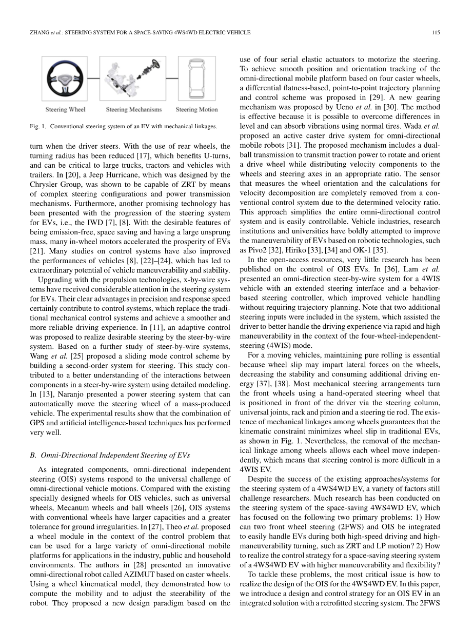 尽管现有的4WS4WD EV转向系统方法/系统取得了成功,但各种因素仍然对研究人员构成挑战。对节省空间的4WS4WD EV的转向系统进行了大量研究,该系统主要关注以下两个主要问题:1)如何将两个前轮转向(2FWS)和OIS集成在一起,以便在两者中都能轻松处理电动车速度驱动和高机动性转向,如ZRT和LP运动?2)如何实现4WS4WD EV节省空间的转向系统的控制策略,具有更高的机动性和灵活性?