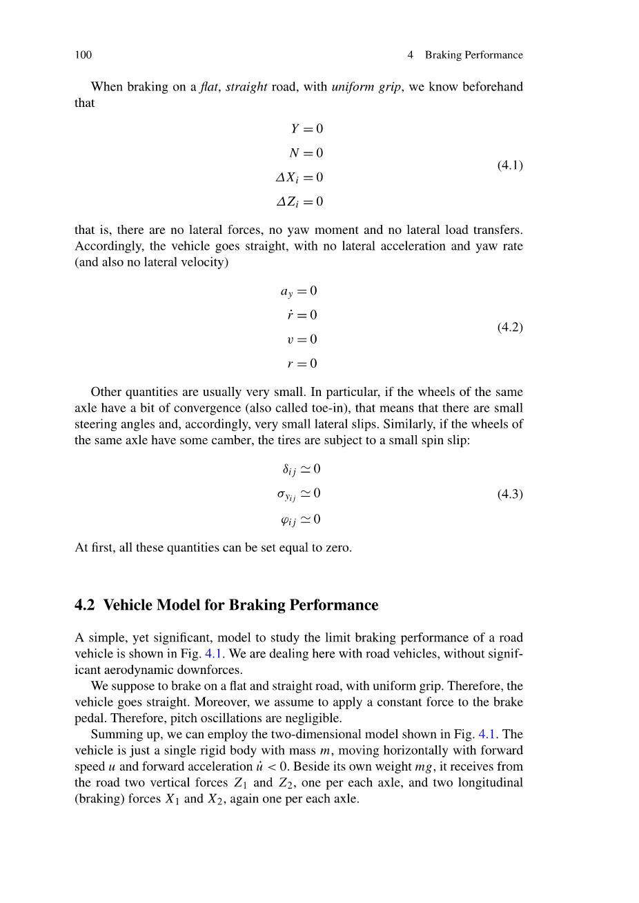 与(3.64)和(3.65)不同,这里我们不仅假设和是正数如图4.6所示,这确实是制动力,但是还有空气动力垂直载荷和假设是正的如果向下指向,则与图4.6相反。