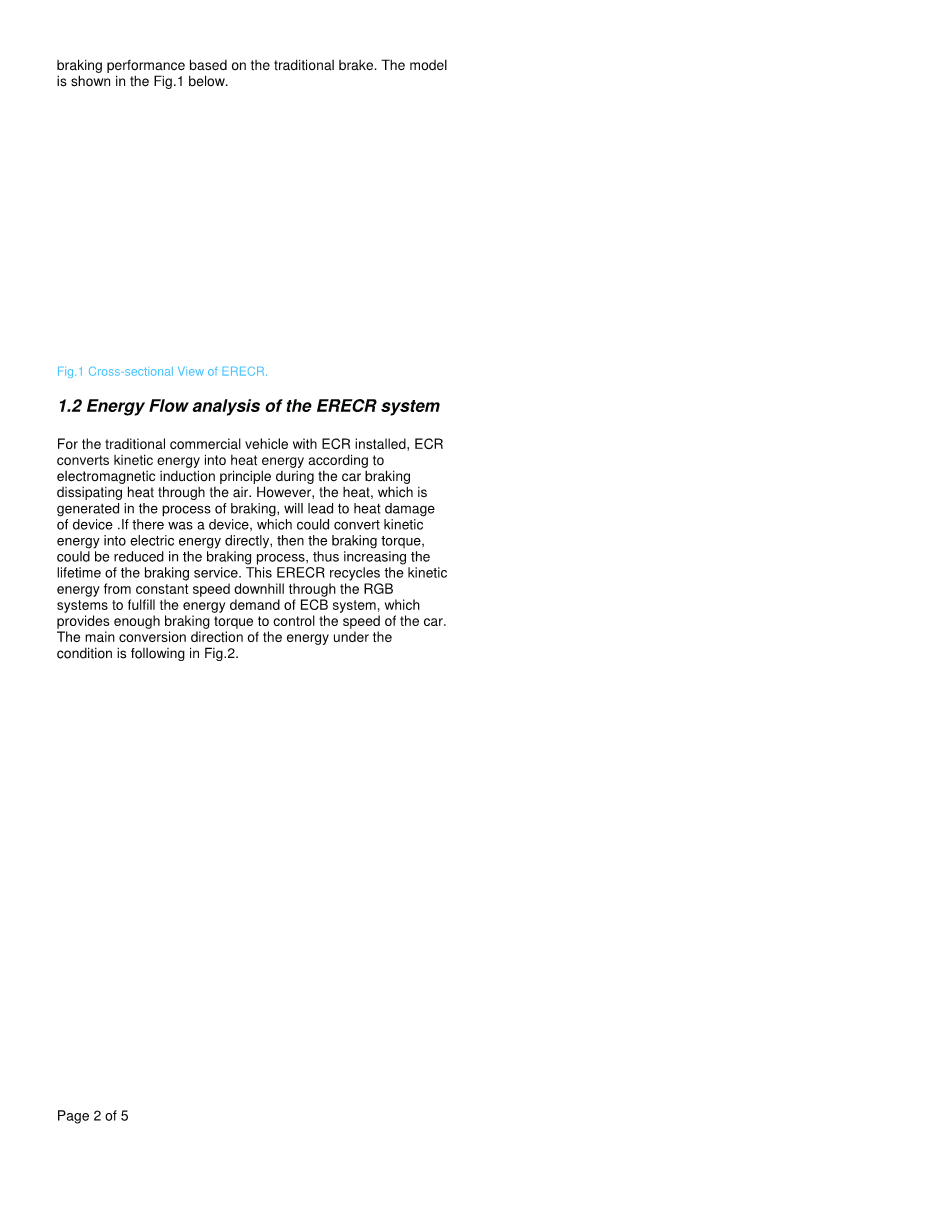 本文包含四节。第1节阐述汽车在降级和制动时的能量流动特性。第2节介绍了创新思路,即将永磁体嵌入减速器的转子旋转轴中,以减小物体的体积和重量,并通过构建MATLAB模型来研究永磁体的分布对涡流缓速器的能量回收效率的影响。在第3节中,根据Matlab对永磁体的布置进行了分析和改进模型。根据GB - 12676 - 1999汽车制动系统机构,性能和试验方法标准,模拟了能量反馈型涡流缓速器在恒速下坡制动工况下的能量回收效果。第4节总结了这篇论文; 上述分析表明,该模型能够有效降低涡流缓速器的功耗和热量。