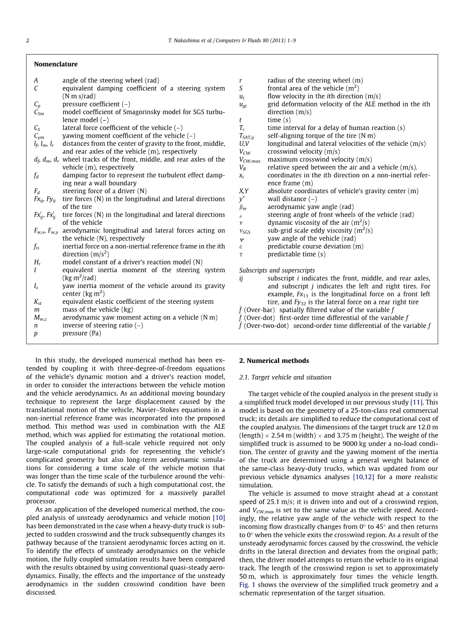 作为完善的数值方法的一种应用,非定常空气动力学和车辆运动的耦合分析[10]已经当重型卡车遇到突然的侧风时,卡车因其瞬间的空气动力作用而改变其路径的情况下得到了证明。