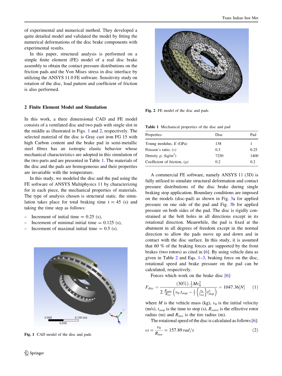 其中 v0是初始速度(m/秒)和Rtire是轮胎半径(m)。圆盘与垫片之间的外部压力是由适用于圆盘的力计算,液压是上文提到的数值[7]: