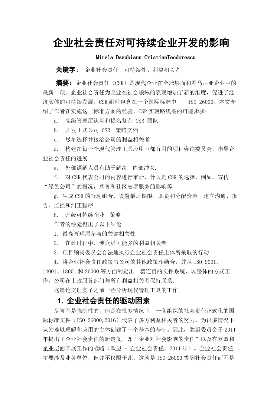 社会公平对企业发展的影响研究外文翻译资料 2022-05-23 20:59:05 英语原文共 11 页,剩余内容已隐藏,支付完成后下载完整资料 英语原文共 9 页,剩余内容已隐藏,支付完成后下载完整资料资料编号:[11907],资料为PDF文档或Word文档,PDF文档可免费转换为Word 原文和译文剩余内容已隐藏,您需要先支付 30元 才能查看原文和译文全部内容!立即支付 发小红书推广免费获取该资料资格。点击链接进入获取推广文案即可: Ai一键组稿 | 降AI率 | 降重复率 | 论文一键排版 PREVIOUS NEXT 您可能感兴趣的文章 面向报废汽车回收的逆向物流网络设计外文翻译资料 改进多目标遗传算法对城市公交线路进行车辆调度外文翻译资料 老年人居室的分析和人因工程外文翻译资料 组合按订单/按库存供应链(节选)外文翻译资料 一种用于解决优化问题的蝙蝠算法的新修改方法外文翻译资料 新的一种工作测定方法及其在制造业中的应用外文翻译资料 混流流水生产及再调度问题研究外文翻译资料 关于影响乘车初始阶段产生不舒感的智能座椅腰部支撑设计变量的实证分析外文翻译资料 基于公交车乘客负荷系数和乘车时间对乘车舒适度影响的分析外文翻译资料 基于物流组成的位置问题的一个模型和方法外文翻译资料