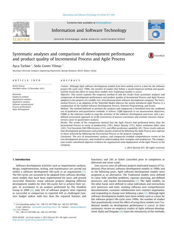增量过程和敏捷过程的开发性能和产品质量的系统分析和比较