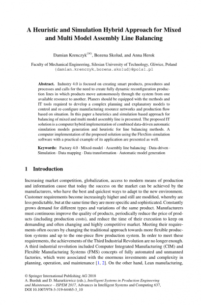 关键词: 工厂4.0 ,混合的模型,装配线平衡,数据驱动,模拟,数据映射,数据转换,自动生成模型。