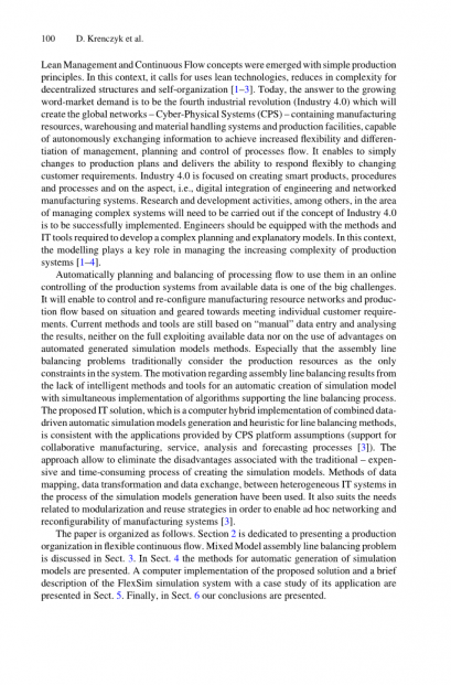 提出的 IT 解决方案是一种结合数据驱动的自动仿真模型生成和线路平衡方法启发式的计算机混合实现。自动模型生成方法可分为三大类: 分段度量方法、结构方法和基于混合的方法软件是基于混合参数法、数据映射和转换方法。该解决方案的显著特点是, 该仿真模型是根据企业 mrp 系统中现有的数据实例自动创建的, 同时根据数据对其进行参数化计划的装配过程。因此, 规划师可以在不知道如何建立模拟模型的情况下创建这些模型。在这种方法中, 构建仿真模型不需要使用传统方法中使用的特定仿真系统模块 (模型是使用数据分析方法和算法处理自动创建的) [11–13]。