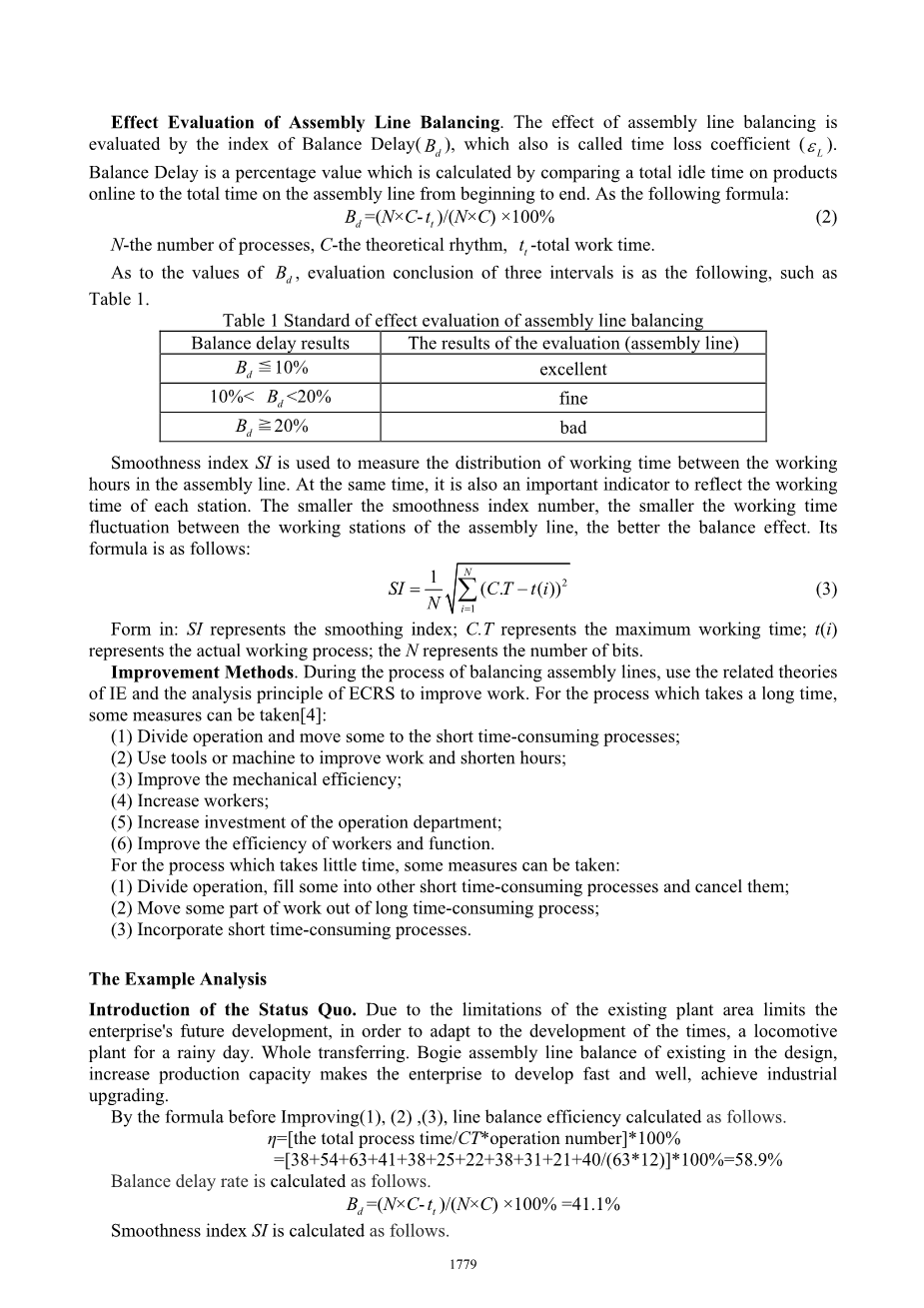 Table 1装配线平衡效果评价标准