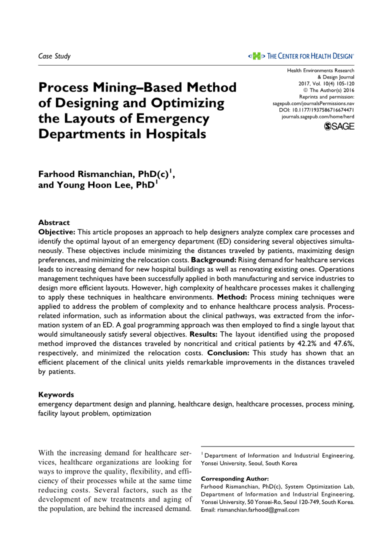 关键词:急诊科设计与规划 医疗保健设计 医疗保健流程 流程挖掘 设施布局问题 优化
