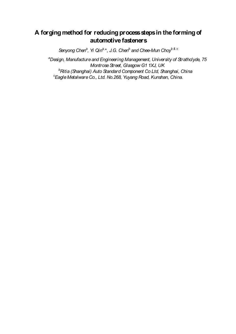 本文的研究报道,提出了布局介绍注射锻造作为一种新的锻造方法来减少汽车紧固件生产锻造步骤,通过结合物流单笔划锻造,结合物流等重拨和垂直方向向前和向后流动,被dicated启用工具设计实现过程所需的材料流动的概念。然而,注射锻造的使用确实引起了一些关于刀具寿命和零件精度的问题。由于锻造步骤的减少,刀具承受的应力可能比常规锻造更大。刀具应力的增加会促进裂纹的扩展,从而降低刀具的使用寿命。这些应力也可能导致刀具挠度的增加,从而影响零件的精度。在本文的研究中对这些问题进行了详细的论述,以确定这种锻造方法用于汽车紧固件成形的可行性。