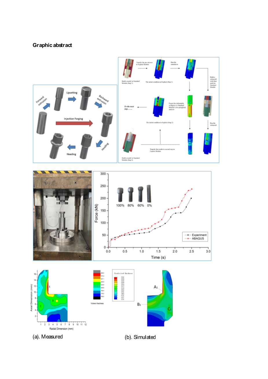 汽车零部件制造业正在经历激烈的竞争。为了提高生产效率,作者引入了单步注射锻造作为传统多步锻造工艺的替代方法来制造汽车紧固件,通过专用的工具设计来实现组合材料的低密度,从而实现复杂的部件形式。为此,进行了可行性研究,包括常规多道次锻造与注射锻造的比较,通过有限元模拟、注射锻造工艺的实验验证以及成型零件的质量详细检验。仿真主要针对车轮螺栓的成型进行。建立了轴对称模型来分析锻件的力和能量需求,从而分析各工序的成型误差和刀具应力。在工厂环境下进行了注射锻造试验,目的是验证有限元结果,确认工艺和工具设计的可行性。在此基础上,验证了用注射锻造代替多级锻造的可行性。研究表明,单步注射成型对成型力的要求较高,但能耗较低。此外,在注射锻造中出现流动故障的可能性更小,这对汽车紧固件的成型至关重要。然而,由于锻造过程中复杂的材料流动和较大的模具挠度,在锻造生产中必须启用专用的模具设计来减少成形误差和提高模具寿命。