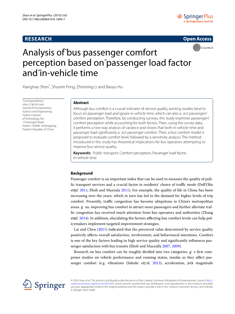 公共汽车乘坐舒适度是评判服务质量的重要指标之一和影响市民对交通工具进行选择的关键要素。(Dellrsquo;Olio et al. 2011; Eboli and Mazzula 2011) 比如,中国人民的生活水平已大大提高,伴随着的是人们对旅途舒适度的更高要求。现在,交通拥堵在中国的一些大都市已经是司空见惯。因此通过提高舒适度来吸引更多的乘客以此来减缓交通拥堵已经受到了公交运营商和当局者高度的重视。(Zhang et al. 2014) 另外,通过阐明影响舒适度的因素还可以帮助那些生产者重新设定目标改进生产策略。