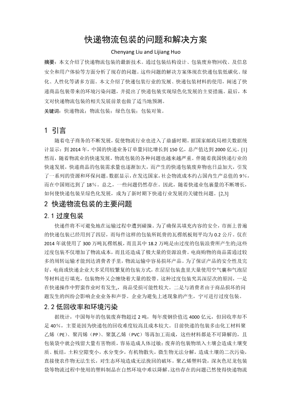 快递包装材料现状分析及循环利用模式设计外文翻译资料 2022-03-10 20:35:53 英语原文共 6 页,剩余内容已隐藏,支付完成后下载完整资料 英语原文共 6 页,剩余内容已隐藏,支付完成后下载完整资料资料编号:[17135],资料为PDF文档或Word文档,PDF文档可免费转换为Word 原文和译文剩余内容已隐藏,您需要先支付 30元 才能查看原文和译文全部内容!立即支付 发小红书推广免费获取该资料资格。点击链接进入获取推广文案即可: Ai一键组稿 | 降AI率 | 降重复率 | 论文一键排版 PREVIOUS NEXT 您可能感兴趣的文章 面向报废汽车回收的逆向物流网络设计外文翻译资料 改进多目标遗传算法对城市公交线路进行车辆调度外文翻译资料 老年人居室的分析和人因工程外文翻译资料 组合按订单/按库存供应链(节选)外文翻译资料 一种用于解决优化问题的蝙蝠算法的新修改方法外文翻译资料 新的一种工作测定方法及其在制造业中的应用外文翻译资料 混流流水生产及再调度问题研究外文翻译资料 关于影响乘车初始阶段产生不舒感的智能座椅腰部支撑设计变量的实证分析外文翻译资料 基于公交车乘客负荷系数和乘车时间对乘车舒适度影响的分析外文翻译资料 基于物流组成的位置问题的一个模型和方法外文翻译资料