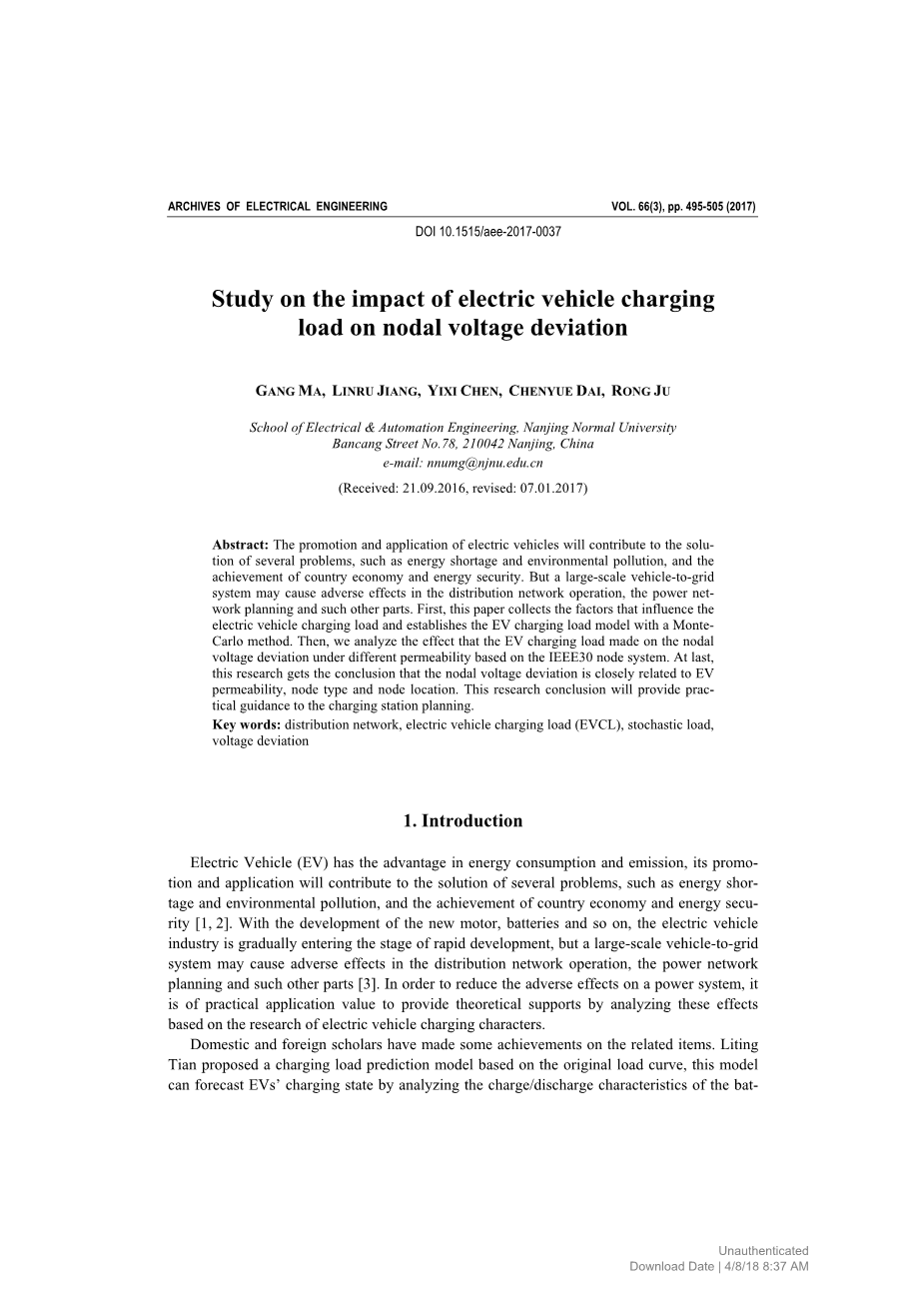 电动汽车的推广应用将有助于解决能源短缺、环境污染等问题,实现国家经济和能源安全。但是,大规模的车辆对电网系统可能会对配电网运行、电网规划等方面产生不利影响。首先,本文收集了影响电动汽车充电负荷的因素,并采用蒙特卡罗方法建立了电动汽车充电负荷模型。然后,分析了基于IEEE30节点系统的不同渗透率下电动汽车充电负荷对节点电压偏差的影响。最后,本研究得出结论:节点电压偏差与EV渗透率、节点类型和节点位置密切相关。本研究结论将为充电站规划提供实际指导。