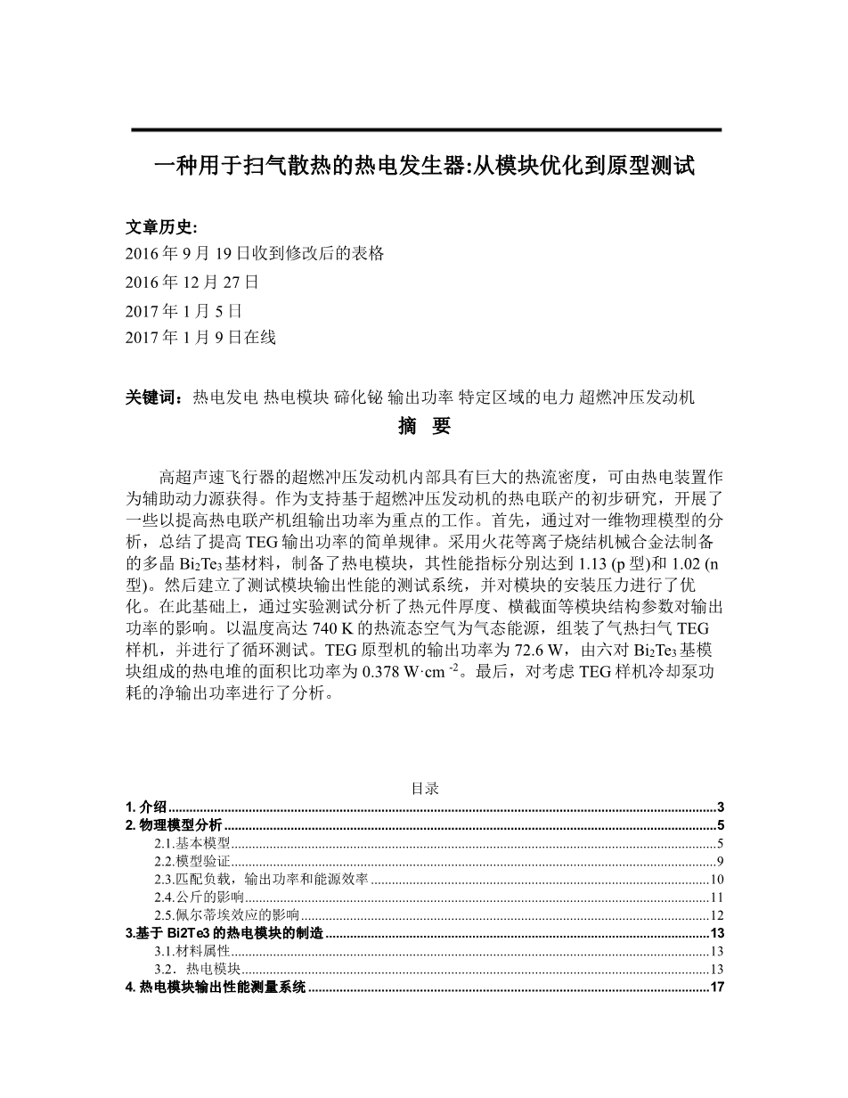 热电发电器件性能ANSYS有限元仿真外文翻译资料 2021-12-11 20:59:31 英语原文共 16 页 英语原文共 31 页资料编号:[5780] 原文和译文剩余内容已隐藏,您需要先支付 30元 才能查看原文和译文全部内容!立即支付 发小红书推广免费获取该资料资格。点击链接进入获取推广文案即可: Ai一键组稿 | 降AI率 | 降重复率 | 论文一键排版 PREVIOUS NEXT 您可能感兴趣的文章 在接触载荷下气相粉末激光熔覆NiCrBSi涂层的性能外文翻译资料 不同聚四氟乙烯含量的GDL的特性及其影响因素的研究对外文翻译资料 有机朗肯循环(ORC)透平膨胀机的热流动力学初步设计外文翻译资料 高烟气脱硫温度:回顾外文翻译资料 英国stretford过程脱除H2S气体的化学工艺外文翻译资料 一个基于 PCM的C02半笼形水合物充电表现的实 验室级储冷系统外文翻译资料 电子冷却用微型回路热管蒸发器的新设计外文翻译资料 双叶片离心泵叶轮的多工况优化及试验测量外文翻译资料 设计和非设计条件下离心泵叶轮内的流动外文翻译资料 应用两相三分量的计算模型来预测离心泵的气蚀及其验证外文翻译资料