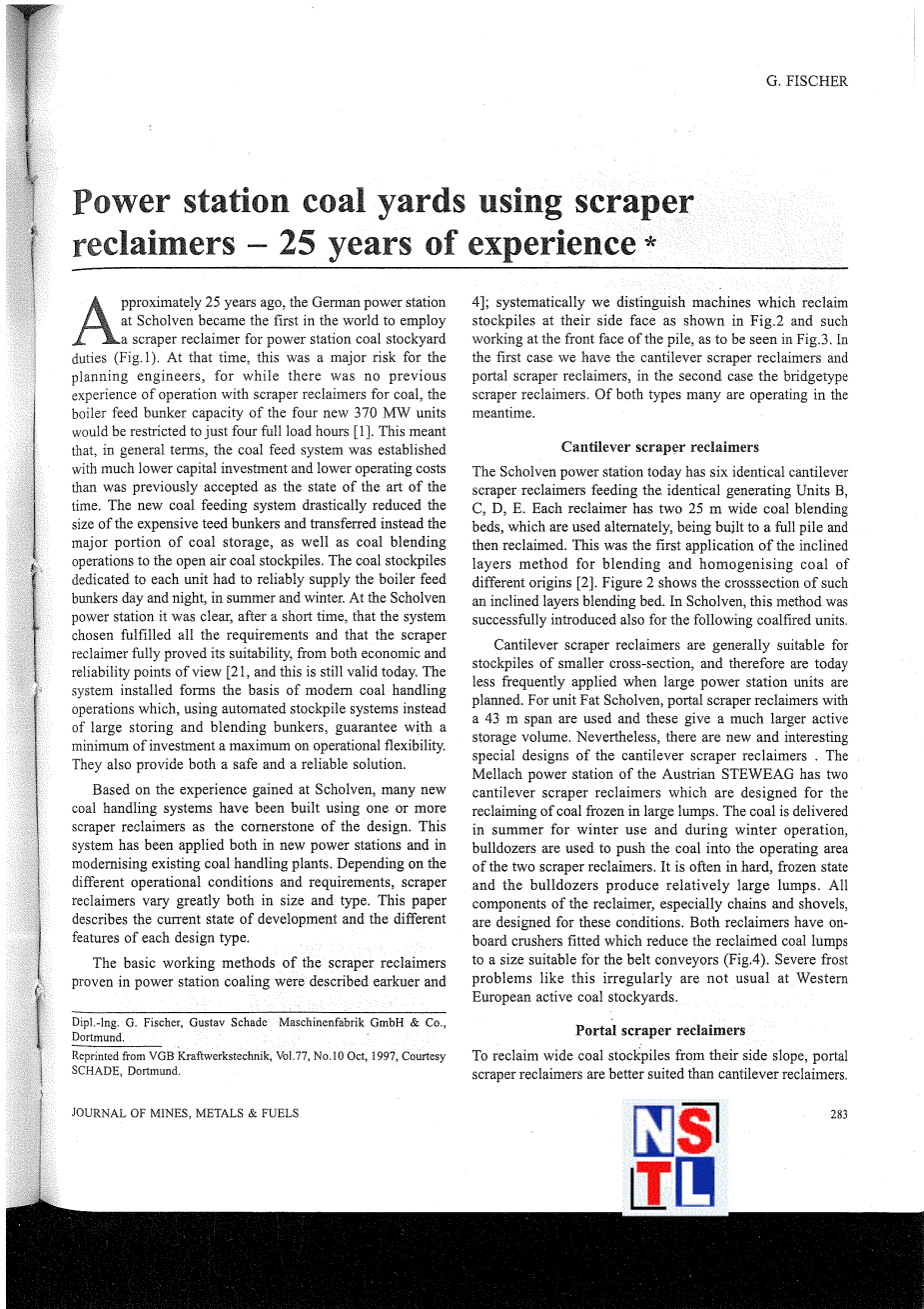 大约25年前,位于Scholven的德国电站成为世界上第一个使用刮板取料机来处理发电站煤堆场的公司(图1)。当时,这对于规划工程师来说是一个重大风险,虽然以前没有使用刮板取料机运行煤炭的经验,但四台新的370 MW机组的锅炉进料仓容量将仅限于满负荷工时[1]。总的来说,这意味着建立的煤炭进料系统的资本投资和运营成本要比以前公认的先进技术低得多。新的给煤系统极大地减少了昂贵的三级煤仓的尺寸,取而代之的是将大部分的煤炭存储以及混煤操作转移到露天煤炭库存中。每个单位专用的煤炭库存必须在夏季和冬季的白天和黑夜可靠地供应锅炉给料仓。在Scholven电站上,很短一段时间后,很明显,从经济和可靠性的角度来看,所选择的系统都满足了所有要求,并且刮板取料机充分证明了其适用性[21,并且今天仍然有效。安装的系统构成了现代煤炭处理业务的基础,该业务使用自动化库存系统而不是大型储料仓和混合燃料仓,以最小的投资保证了最大的操作灵活性。它们还提供了安全可靠的解决方案。