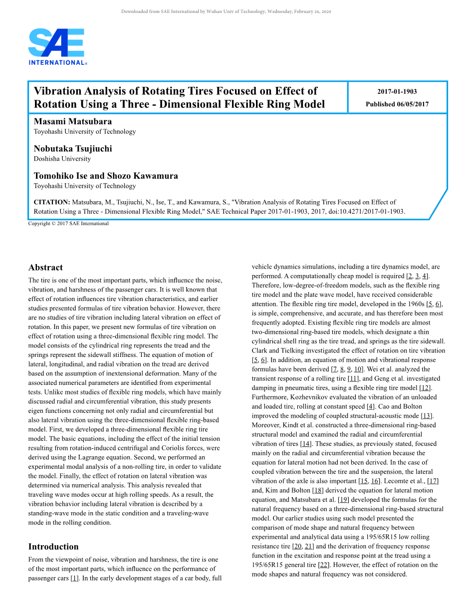 8. Konghui Guo, 'A Model of Tire Enveloping Properties andits Application on Modeling of Automobile Vibration Sys-tems ', SAE paper No. 980253.