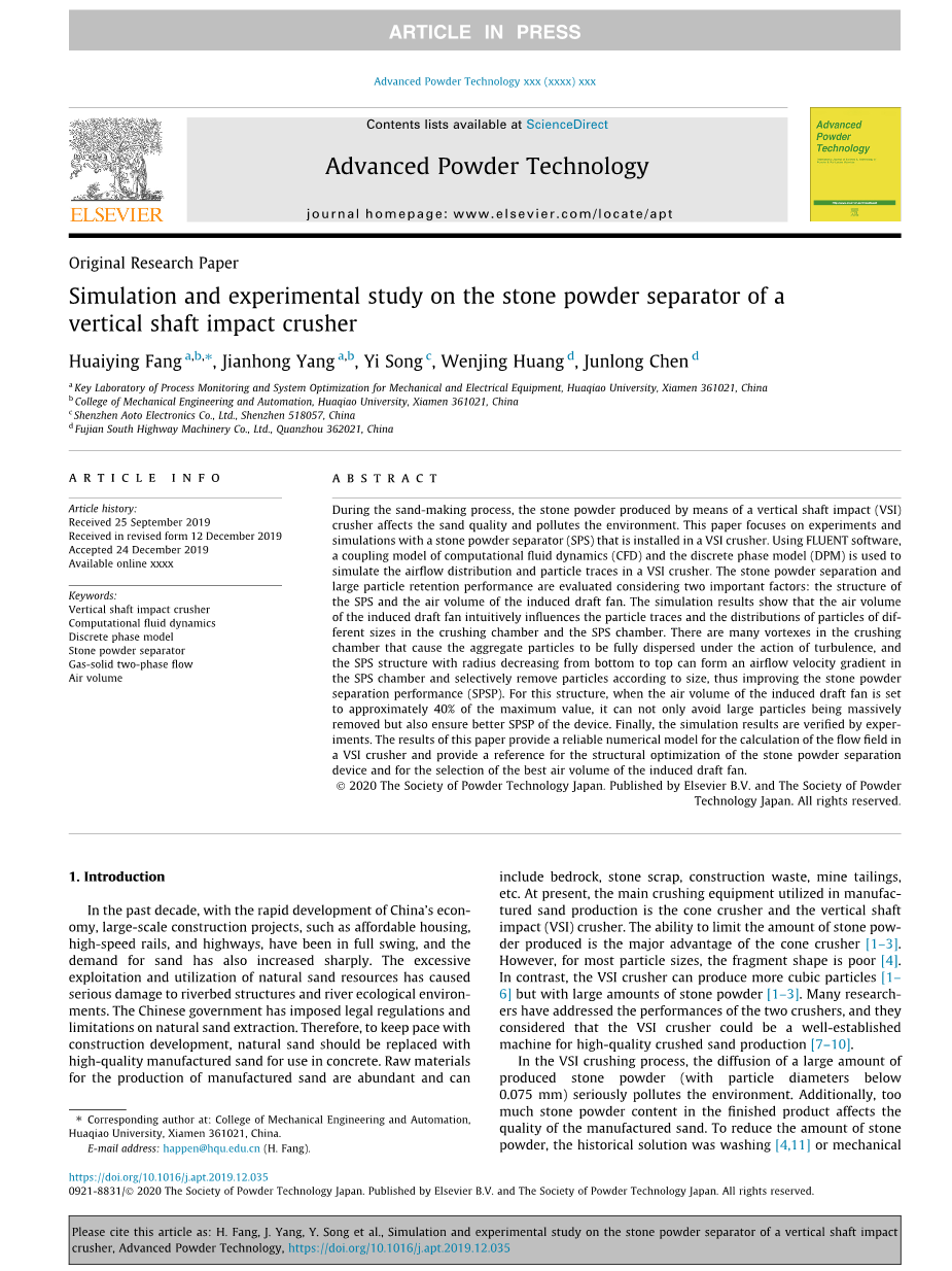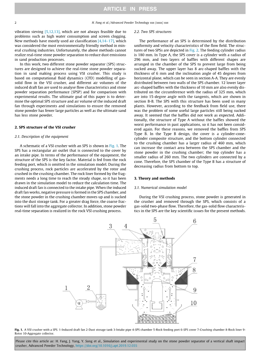 在VSI破碎过程中,石粉在破碎机中产生,通过SPS被除去,SPS由气-固两相流组成。因此,SPS中的气固流动特性是本方法的关键科学问题。