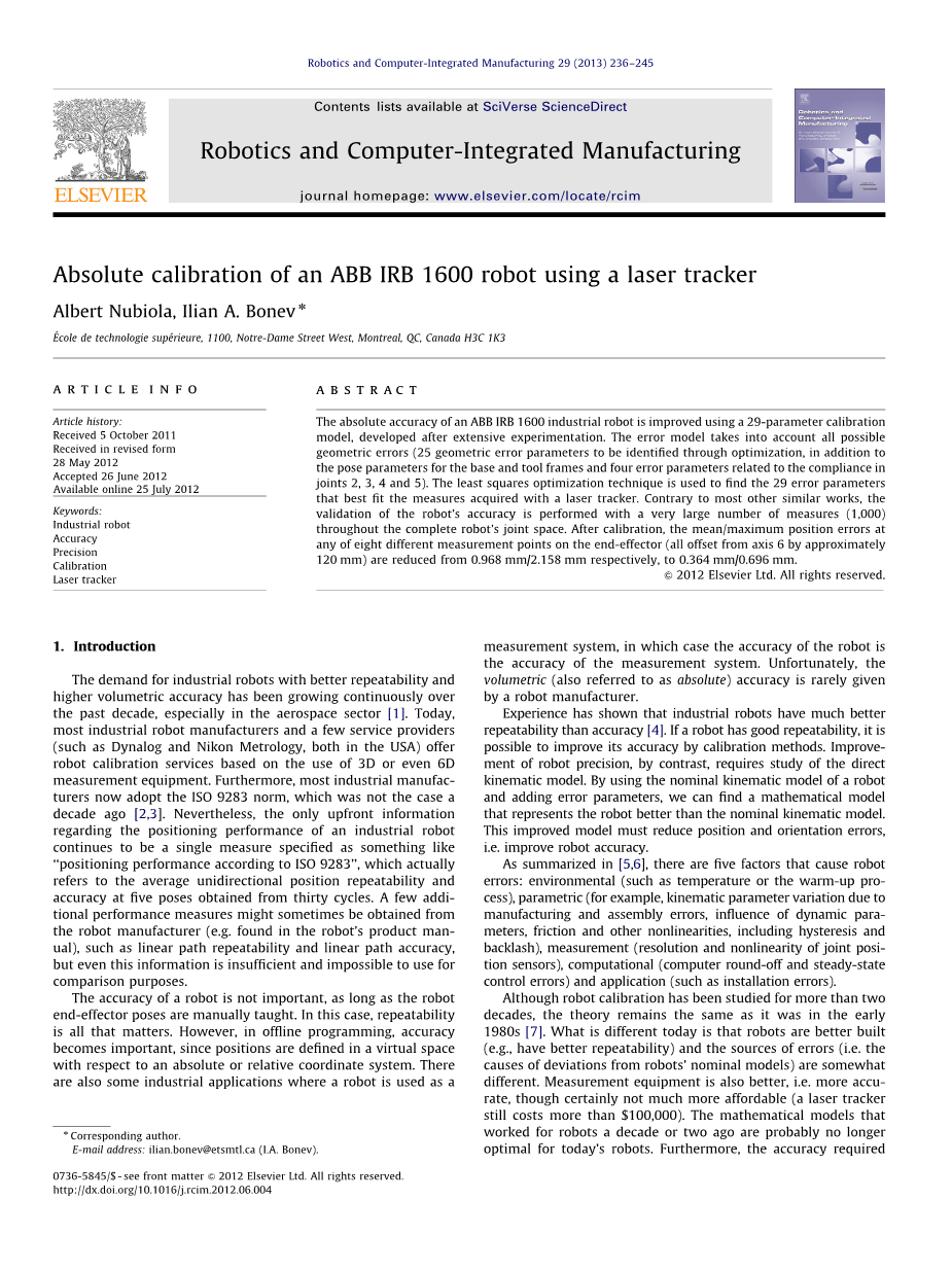 使用激光跟踪器对ABB IRB 1600机器人进行绝对校准