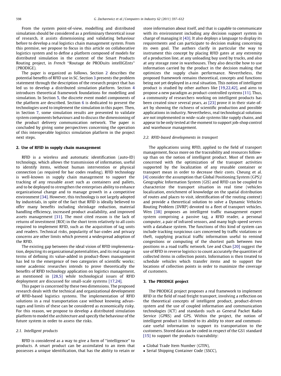 从系统的角度来看,建模和分布式仿真应该被视为一个初步的理论问题研究,它协助标注和验证行为在开发一个真正的物流链管理系统之前。从这个前提下,我们建议在这篇文章里把重点放在协作物流系统,和定义一个由分布式仿真模型组成的平台,即下文中的智能产品路由项目,法语为“Routage de PRODuits intellIGEnts”(PRODIGE)。