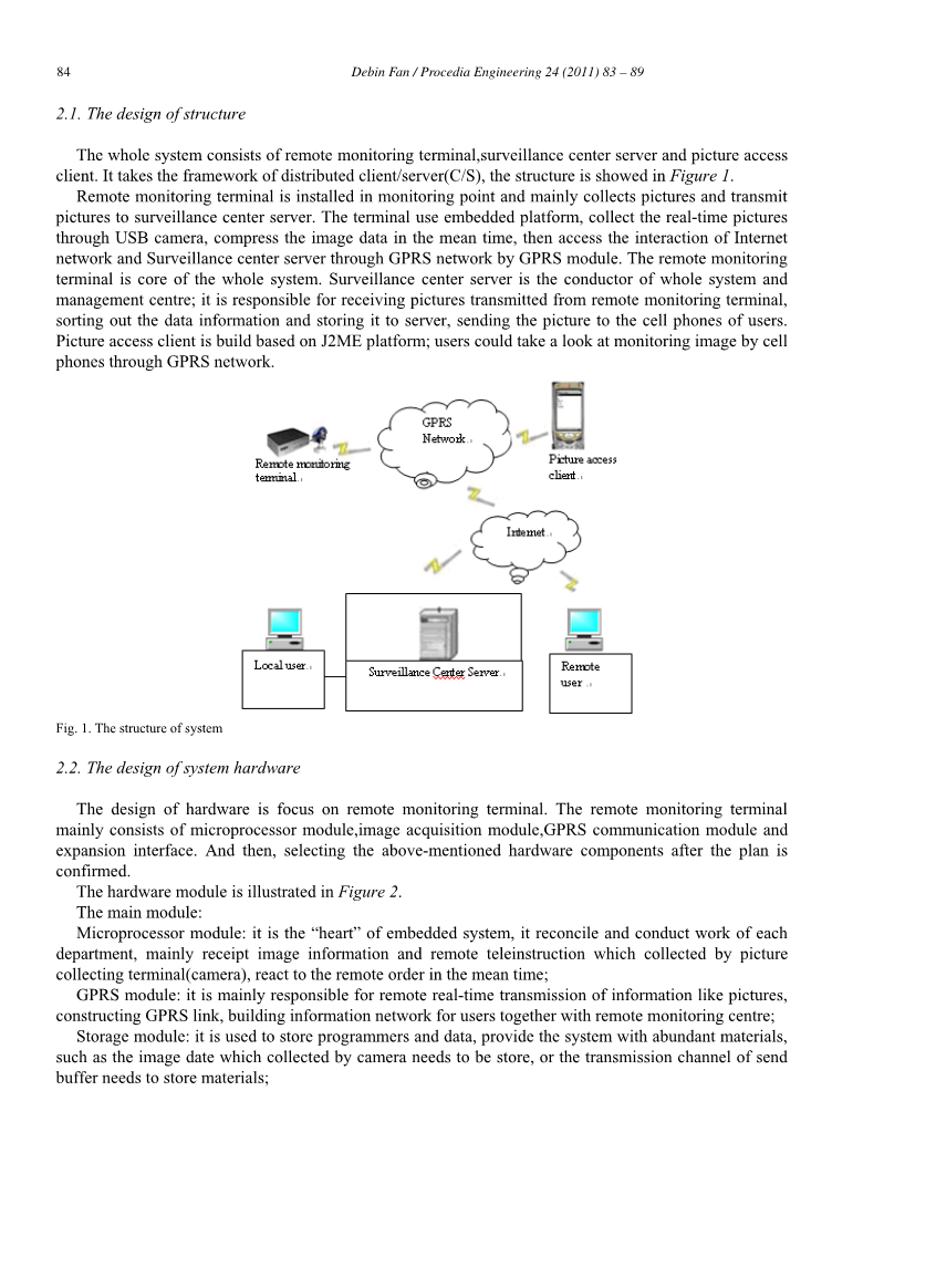 系统软件的设计可分为三个部分:远程监控终端的设计、监控中心服务器的设计、图片访问客户端的设计。