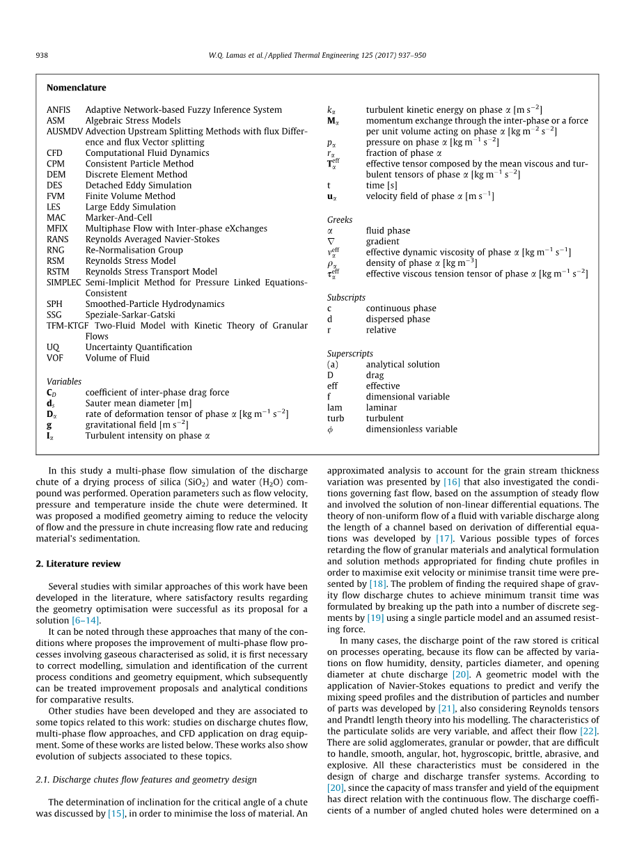 摘要采用[24]方法研究了两种不同工况下质量拖动设备在运行环境下的压降和传热现象。[25]列出了一系列本质上是二维的自由表面流动,根据颗粒通量、溜槽倾角和固定床的几何形状,这些流动呈现出一系列不同的结构特征。针对设备的一项研究中,有关压降和收集效率,即气流的实际能力,促进固体particleswas解决的阻力[26、27],在一定条件下可以受到几个因素的影响,如几何、物理性质的气体和颗粒,在来流流速和固体浓度。