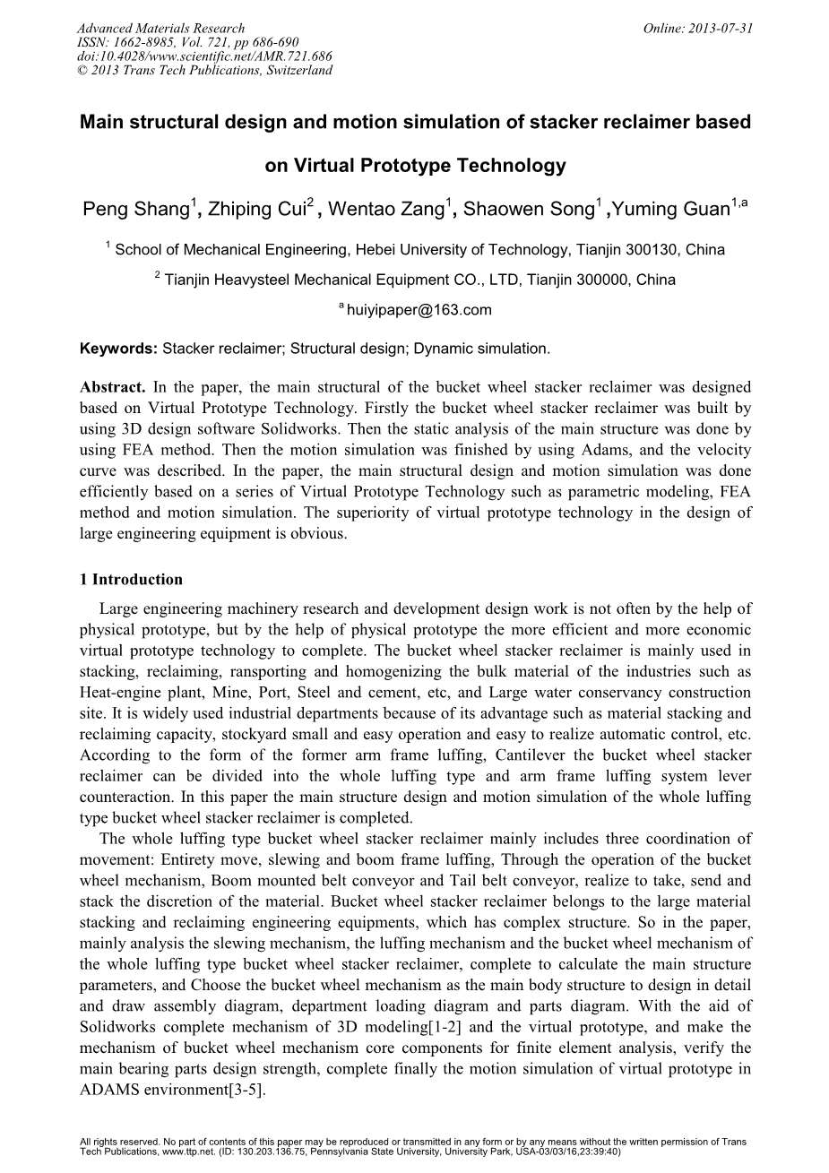 基于虚拟样机技术的堆取料机主要结构设计与运动仿真研究