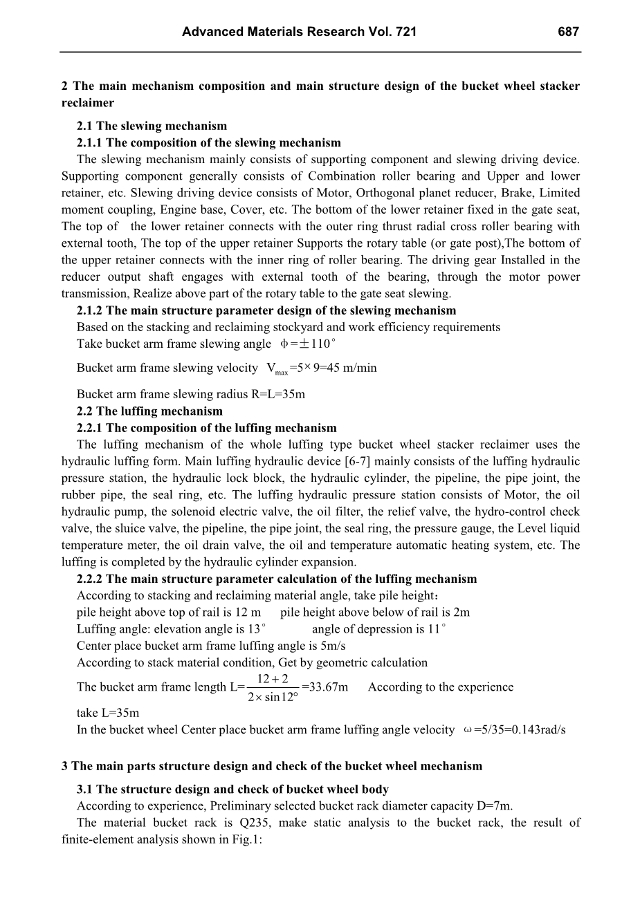 本文基于参数化建模、有限元强度分析和运动仿真等一系列虚拟样机技术,有效地完成了斗轮堆取料机的结构设计,充分展示了虚拟样机技术在大型工程设备设计中的优越性。本文借助于后续的相关软件,完成了不同工况下机械设备运行状态下的风、雪荷载的仿真工作。
