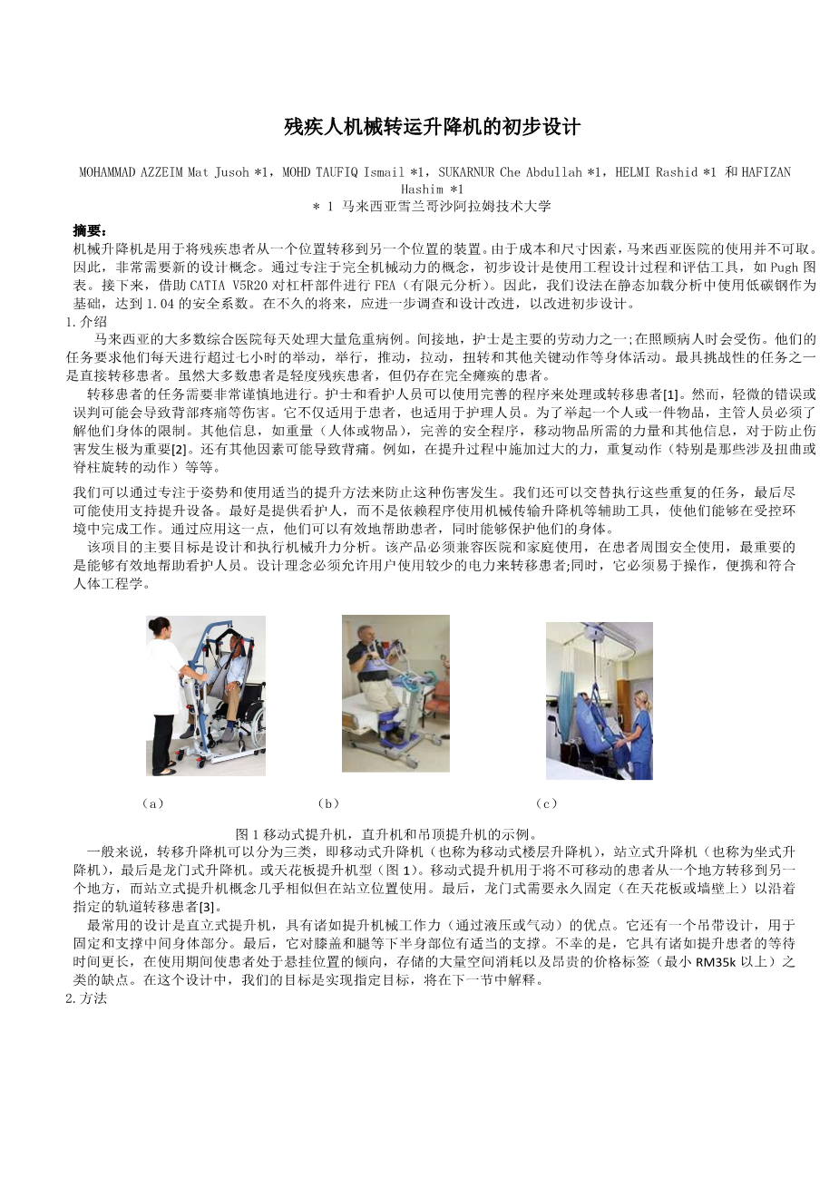 Preliminary Design of a Mechanical Transfer Lift for Disabled Patient