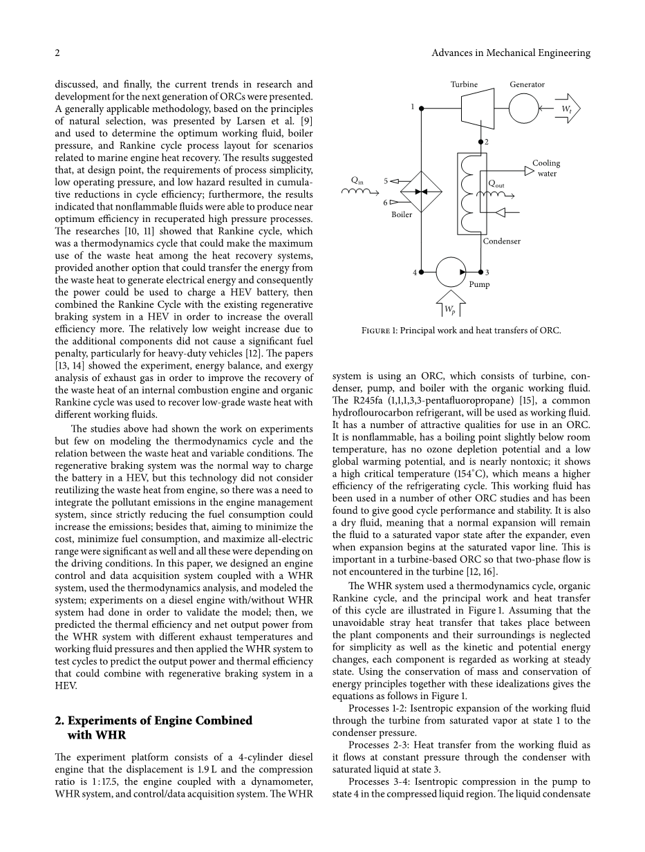 在本文中,我们设计了一个发动机控制和数据采集系统与WHR系统相结合,利用热力学分析,并对系统进行建模;为验证该模型的有效性,在一台有/无WHR系统的柴油机上进行了试验;然后,我们对不同排气温度和工作流体压力下的WHR系统的热效率和净输出功率进行预测,然后利用WHR系统进行循环测试,预测HEV中与再生制动系统相结合的输出功率和热效率。