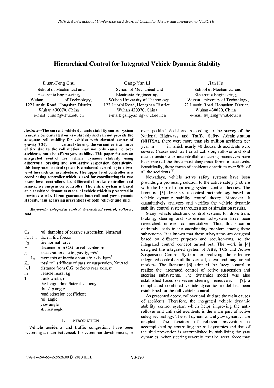 车辆动态稳定性的多级控制外文翻译资料