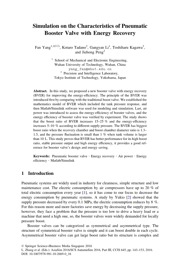 关键词:气动增压阀;能量回收;空气动力;能源效率;Matlab / Simulink