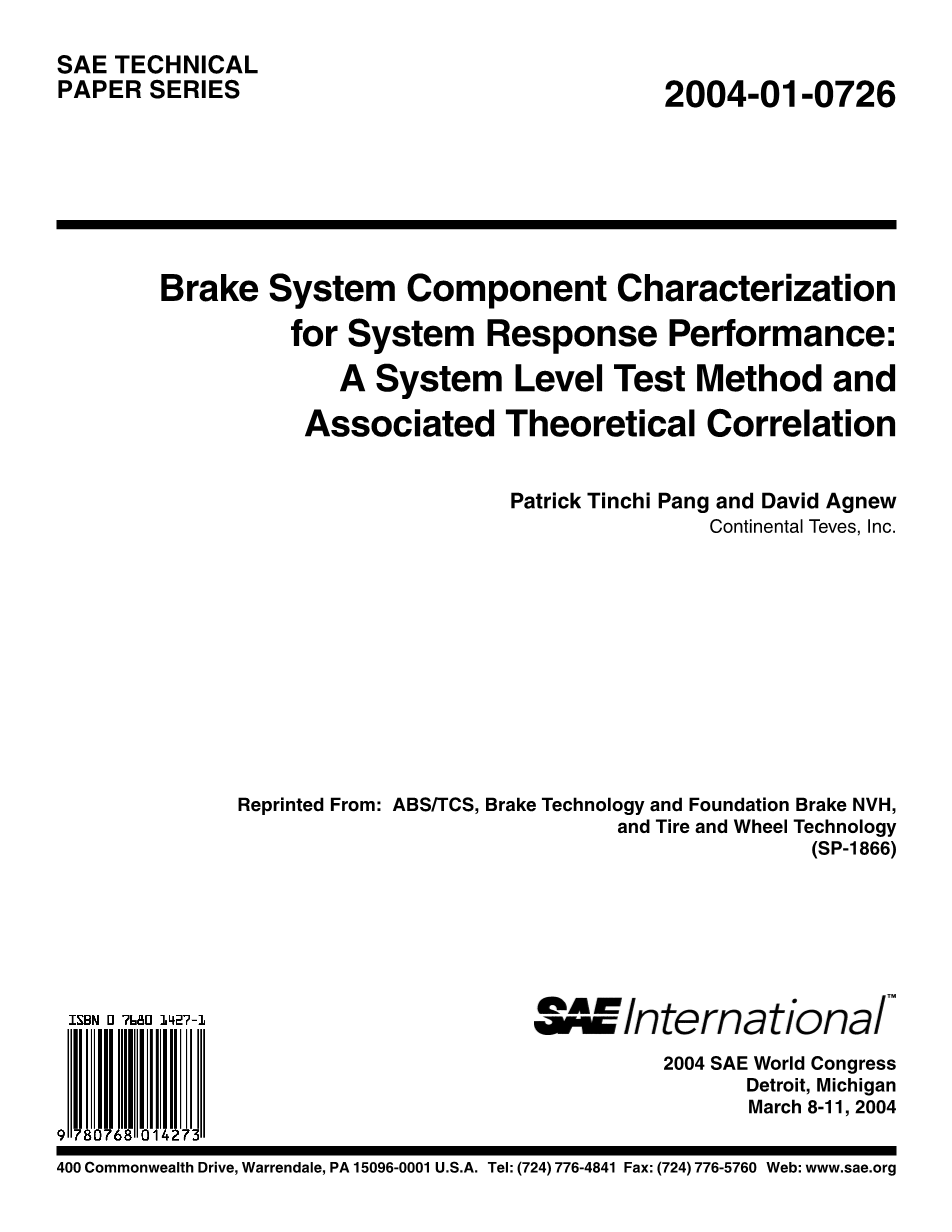 文 摘:液压制动系统的动态响应时间通常在系统优化或性能权衡时考虑。关于响应时间的相对重要性的研究可以在参考文献[1]中找到。对于制动系统工程师来说,需要知道每个系统组件在不同条件下所产生的影响。为了更好地描述和预测汽车制动系统内的流体动力学,建立了一个模型来预测制动液通过每个制动元件的压差。提出的车辆测试方法被用来量化单个流量限制。将测试结果与实际数据进行对比。了解制动系统各部件的流动特性,为制动系统工程师提供优化响应时间性能的宝贵信息。