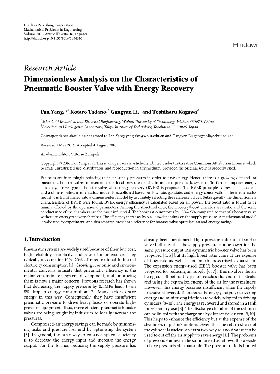 Fan Yang,1,2 Kotaro Tadano,2 Gangyan Li,1 and Toshiharu Kagawa2