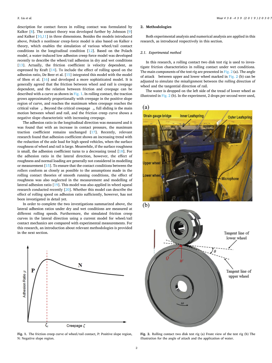 为了完成以上总结的两个研究,本项研究测量了在干燥和潮湿条件下不同的滚动速度的横向附着比。此外,将使用轮/轨接触力学的当前模型在横向方向上模拟的摩擦蠕滑曲线与实验测量值进行了比较。对于本研究,下一章将提供有关研究方法的介绍。