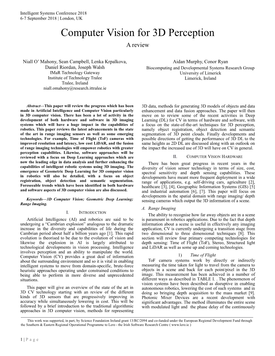 近年来,在尺寸,成本,光谱灵敏度和深度感应功能方面,视觉传感器技术的多样性取得了很大进展。这些发展意味着在更广泛的应用中更频繁地部署,例如,自动驾驶汽车,农业,医疗保健,地理信息系统(GIS)和工业自动化。本文将重点介绍空间域的发展,其中范围成像/深度感应摄像机输出场景的3D信息。