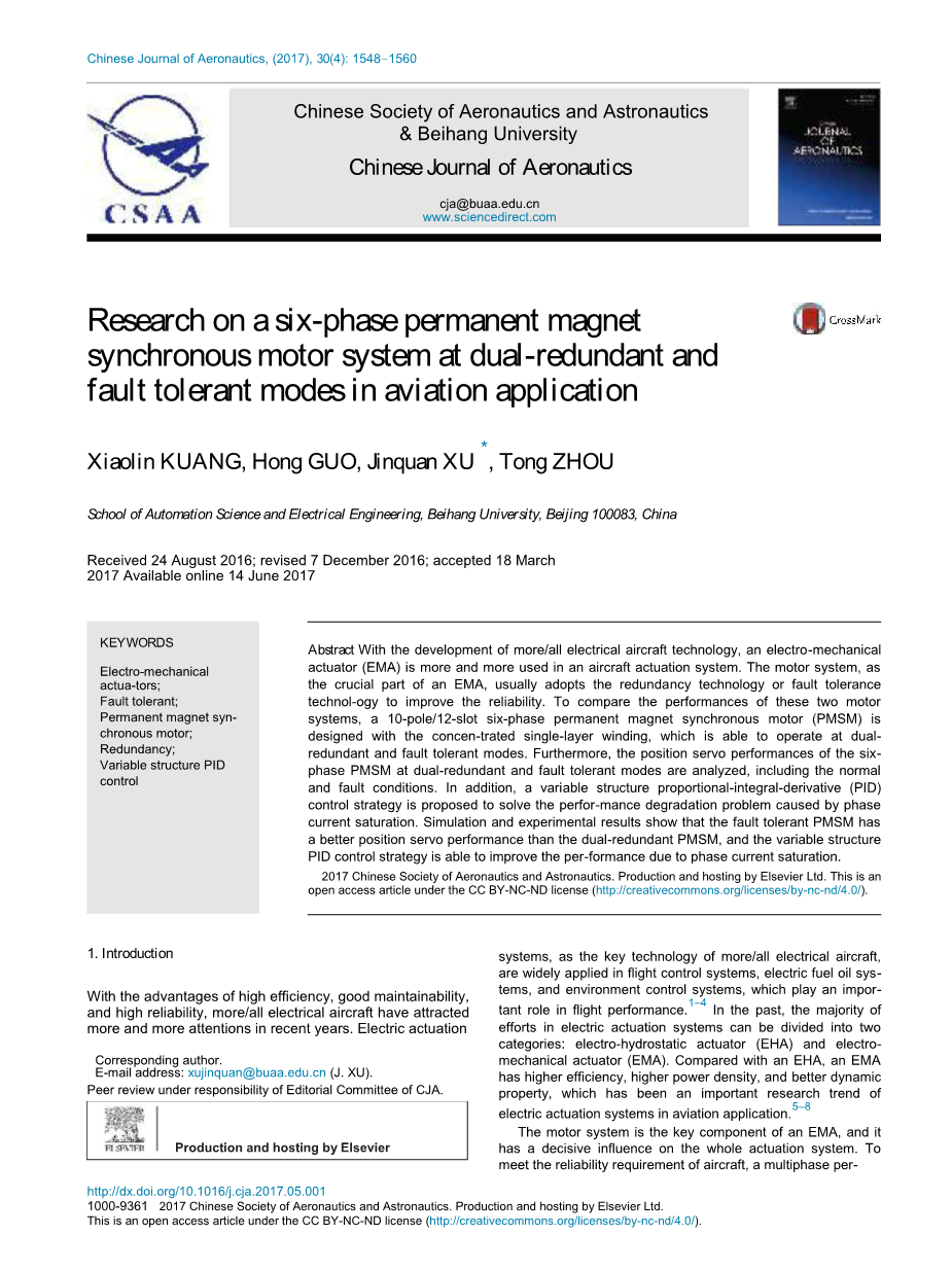 两类:冗余PMSM和容错PMSM.1http://dx.doi.org/10.1016/j.cja.2017.05.001