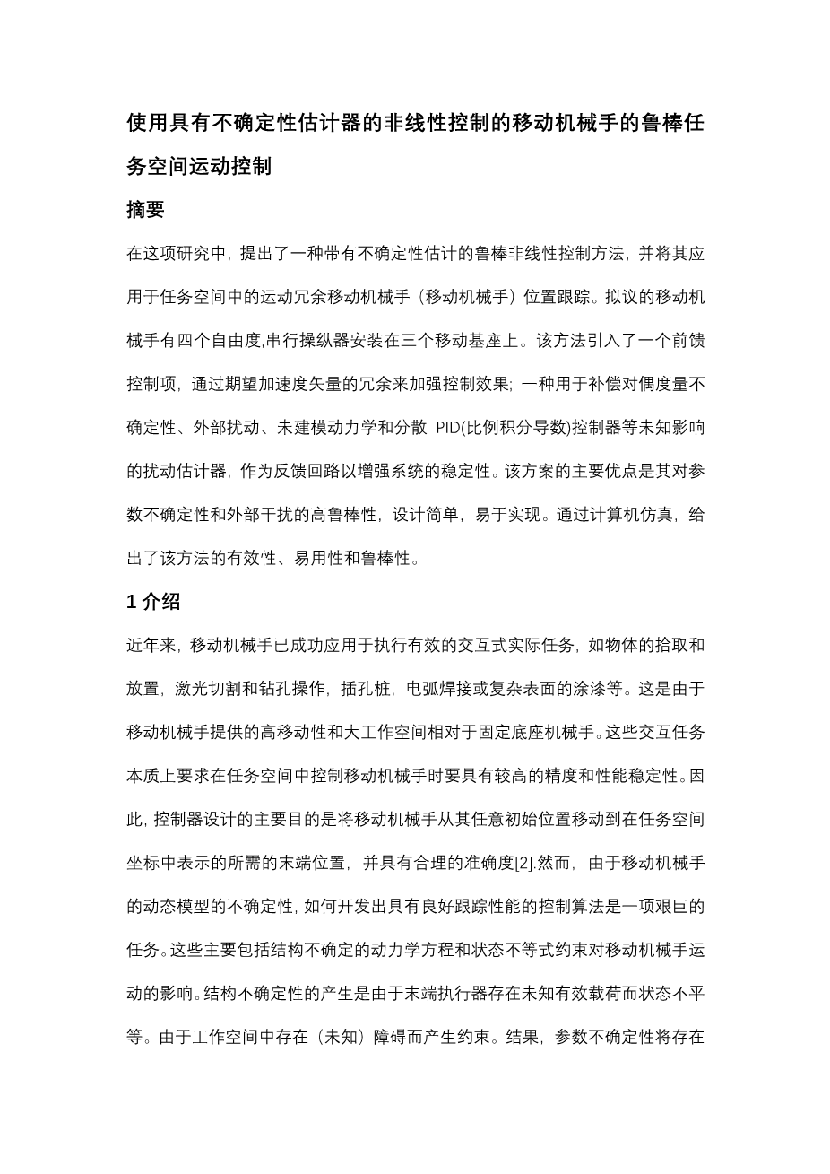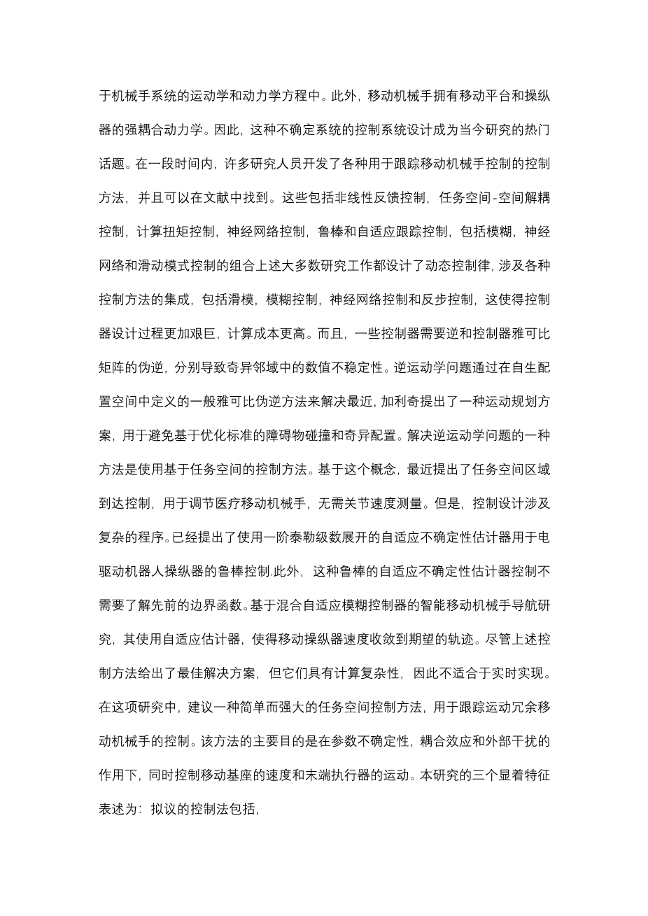 两轮驱动移动机器人导航控制方法研究外文翻译资料 2022-02-21 20:10:29 英语原文共 12 页,剩余内容已隐藏,支付完成后下载完整资料 英语译文共 21 页,剩余内容已隐藏,支付完成后下载完整资料资料编号:[447400],资料为PDF文档或Word文档,PDF文档可免费转换为Word 原文和译文剩余内容已隐藏,您需要先支付 30元 才能查看原文和译文全部内容!立即支付 发小红书推广免费获取该资料资格。点击链接进入获取推广文案即可: Ai一键组稿 | 降AI率 | 降重复率 | 论文一键排版 PREVIOUS NEXT 您可能感兴趣的文章 应用AI材料的动力转向油泵性能分析外文翻译资料 基于LabVIEW的柔性试验台外文翻译资料 碳纳米管膜和碳纳米纤维纸在碳纤维增强环氧树脂复合材料中的阻燃性能研究外文翻译资料 种子塑料盒自动运货板搬运系统的研发外文翻译资料 六自由度机械臂建模及分析外文翻译资料 滚动速度对轮/轨接触面横向附着力的影响外文翻译资料 用于线性可调焦距水下超声波聚焦的宽带反射曲面外文翻译资料 Dymola发动机热冲击试验外文翻译资料 血泵体外循环测试平台研究外文翻译资料 软体机械手多关节机构设计与仿真分析外文翻译资料