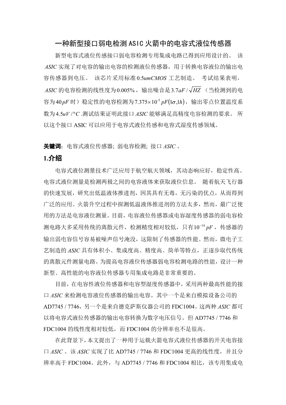 交流电桥法微弱电容检测电路设计外文翻译资料 2022-03-12 15:37:38 英语原文共 15 页,剩余内容已隐藏,支付完成后下载完整资料 英语译文共 15 页,剩余内容已隐藏,支付完成后下载完整资料资料编号:[478658],资料为PDF文档或Word文档,PDF文档可免费转换为Word 原文和译文剩余内容已隐藏,您需要先支付 30元 才能查看原文和译文全部内容!立即支付 发小红书推广免费获取该资料资格。点击链接进入获取推广文案即可: Ai一键组稿 | 降AI率 | 降重复率 | 论文一键排版 PREVIOUS NEXT 您可能感兴趣的文章 应用AI材料的动力转向油泵性能分析外文翻译资料 基于LabVIEW的柔性试验台外文翻译资料 碳纳米管膜和碳纳米纤维纸在碳纤维增强环氧树脂复合材料中的阻燃性能研究外文翻译资料 种子塑料盒自动运货板搬运系统的研发外文翻译资料 六自由度机械臂建模及分析外文翻译资料 滚动速度对轮/轨接触面横向附着力的影响外文翻译资料 用于线性可调焦距水下超声波聚焦的宽带反射曲面外文翻译资料 Dymola发动机热冲击试验外文翻译资料 血泵体外循环测试平台研究外文翻译资料 软体机械手多关节机构设计与仿真分析外文翻译资料