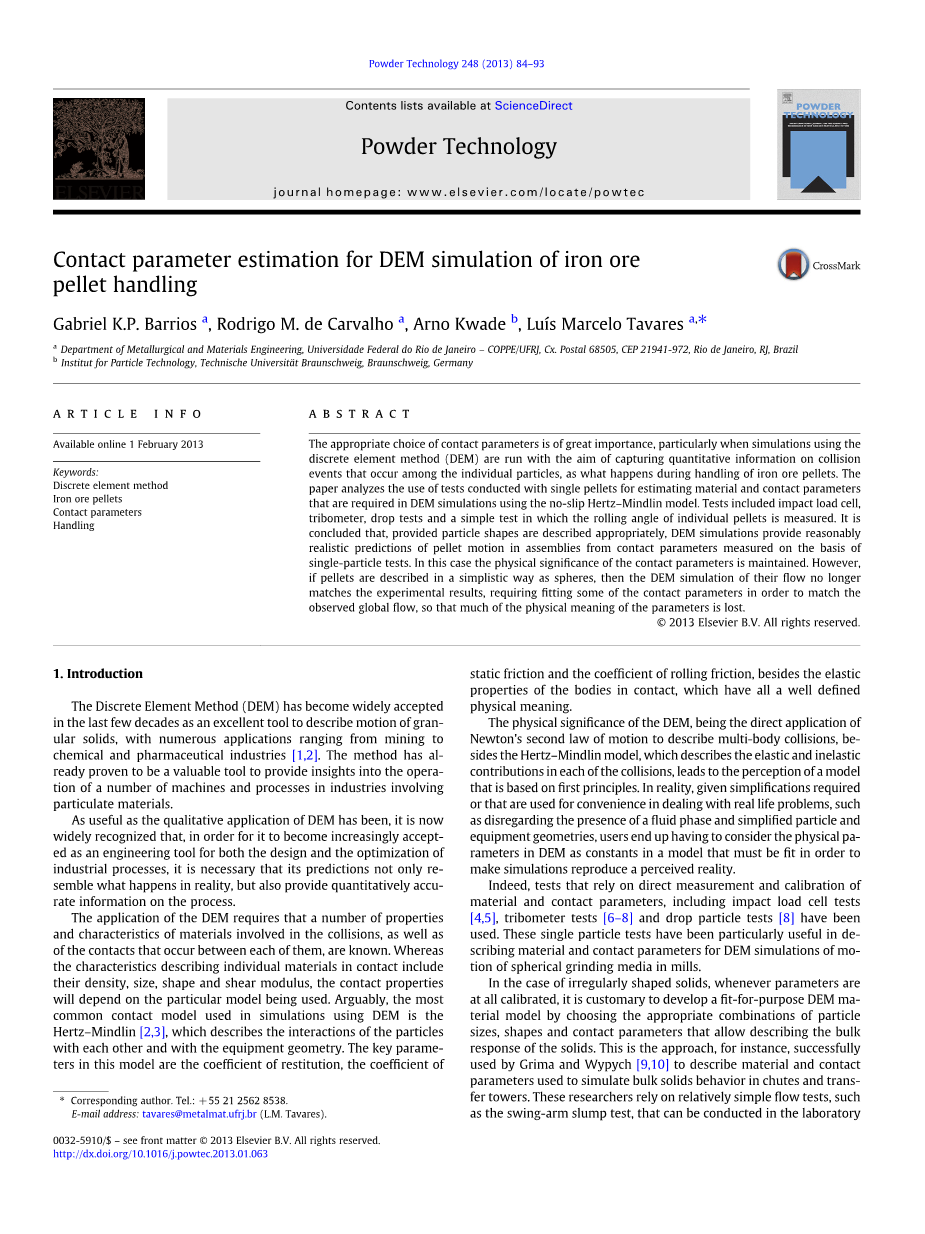 Gabriel KP Barrios,Rodrigo M. de Carvalho,Arno Kwade,Luiacute;sMarcelo Tavares