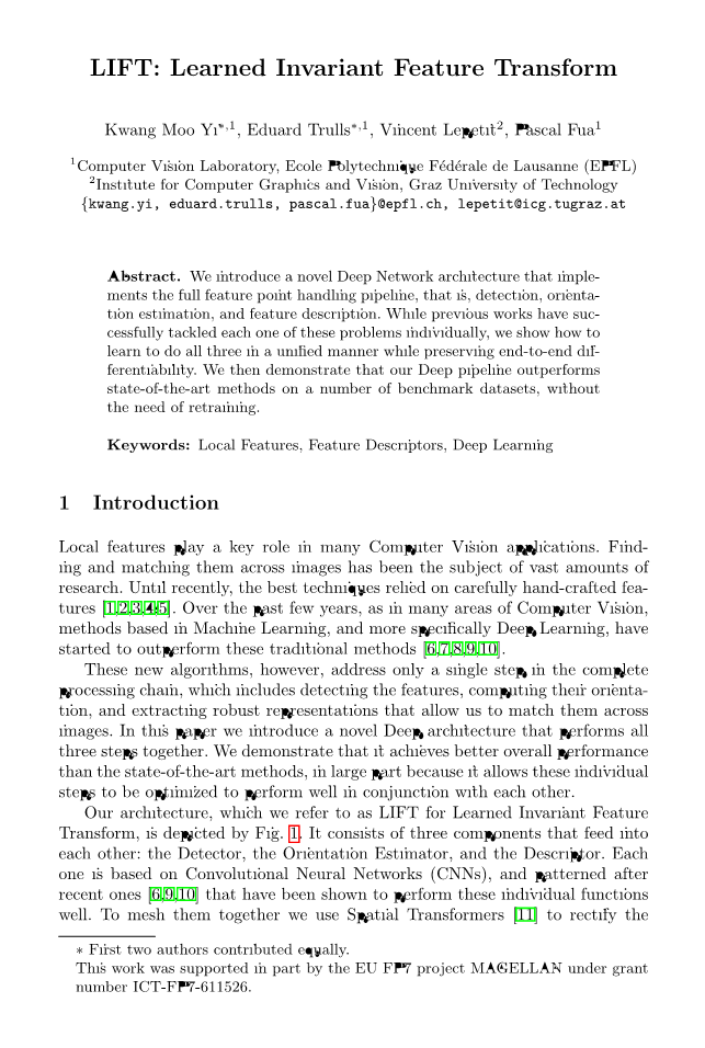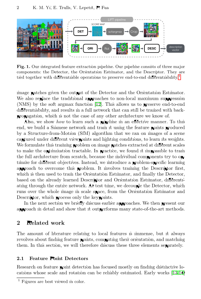 局部特性在许多计算机视觉应用中发挥着关键作用。在图像中找到并匹配它们一直是许多研究的主题。直到现在,最好的技术都依赖于精心制作的特性[1,2,3,4,5]。在过去的几年里,就像在计算机视觉的许多领域一样,基于机器学习的方法和更具特色的深入学习已经开始超过这些传统的方法。