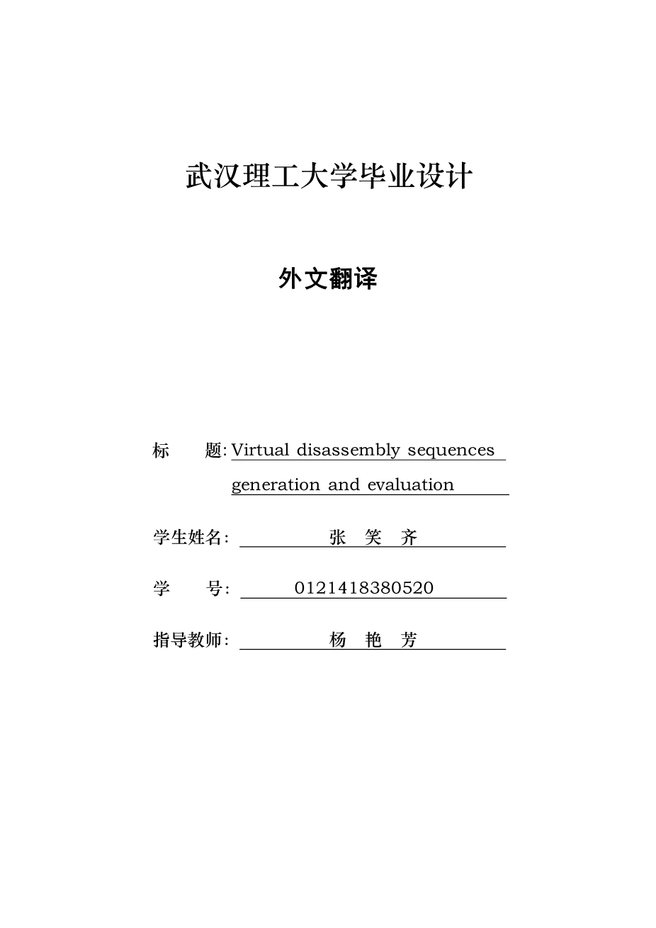 基于UNITY3D的新型减速器虚拟拆卸序列优化及仿真研究外文翻译资料