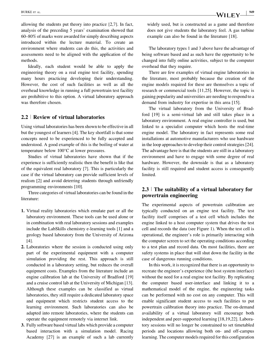 布拉德福大学的虚拟实验室[ 19 ]是一个半虚拟实验室,仍然在实验室环境中运行。一个真正的引擎控制器被使用,但是连接到了一个专门的计算机,它拥有实时引擎模型。事实上,实验室代表了汽车制造商的一些实际装置,他们使用在回路中的硬件来开发他们的控制策略[ 24 ]。这里的优势在于学生们仍处于实验室环境中,必须与某种真正的硬件进行接触。然而,不利的一面是,由于仍然需要实验室设施,学生的访问因此受到限制。