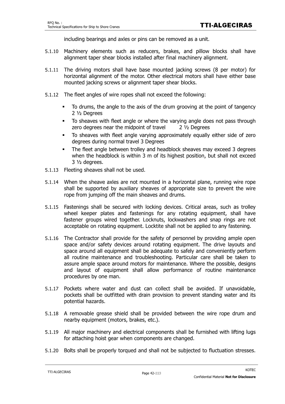 5.1.16承包商应通过在旋转设备周围提供充足的空地和/或安全装置来保障人员的安全。所有设备周围的驱动布局和空间应足以安全方便地进行所有日常维护和故障排除。应特别注意确保电机周围有足够的空间进行维修。在可能的情况下,设备的设计和布局应允许一人执行例行维修程序。