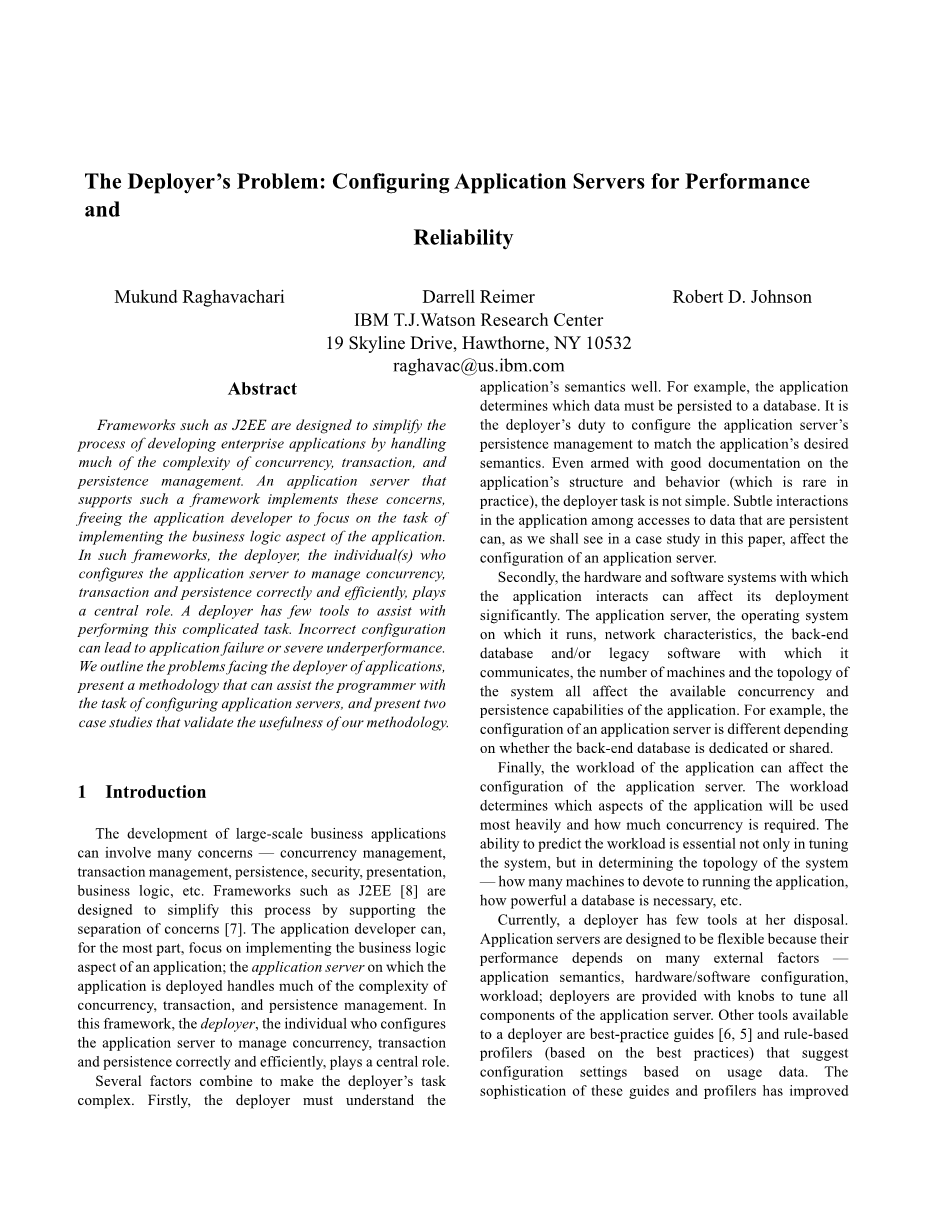 大型业务应用程序的开发可能涉及许多问题 - 并发管理,事务管理,持久性,安全性,演示,业务逻辑等。例如J2EE [8] 的框架旨在通过支持分离问题来简化此过程[7]。应用程序开发人员可以主要专注于实现应用程序的业务逻辑方面; 部署应用程序的应用程序服务器处理了大部分复杂的并发性,事务性和持久性的管理。在这个框架下,部署者,配置应用服务器并正确的,有效的地管理并发性,事务性和持久性的个人,起着核心的作用。