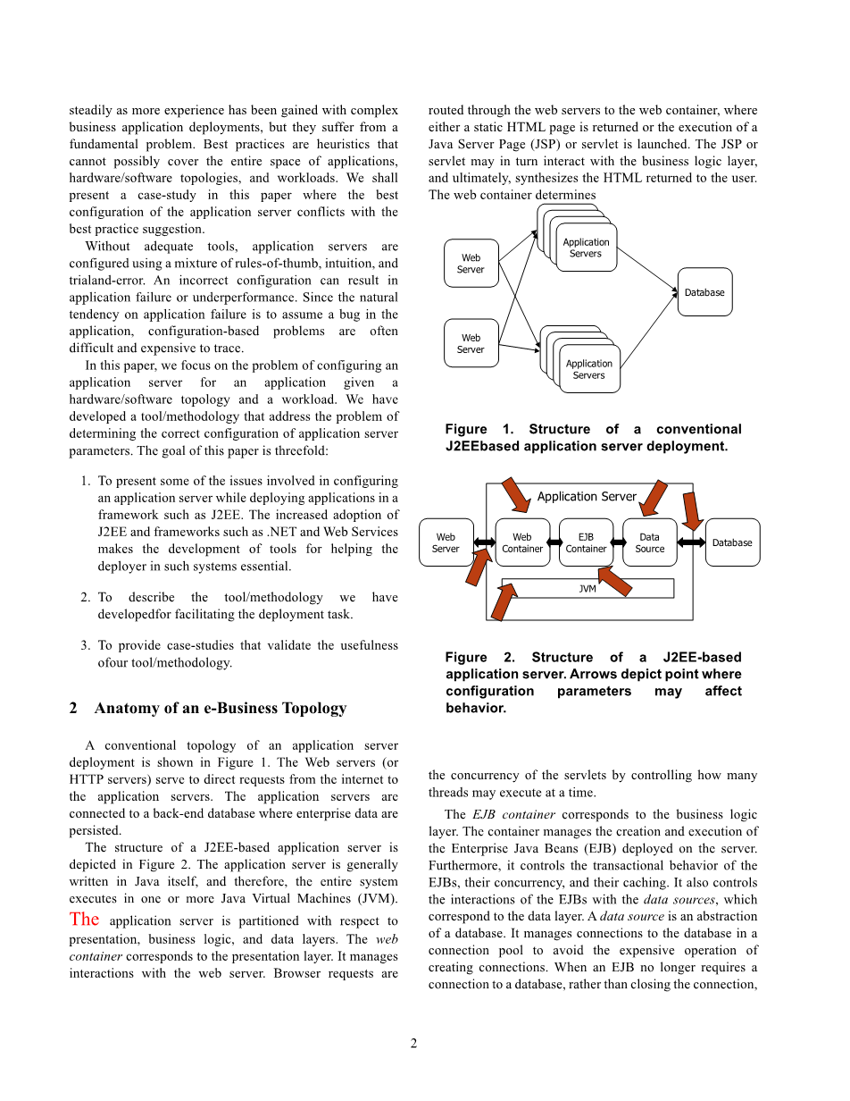 图2.基于J2EE的应用程序服务器的结构。 箭头描绘配置参数可能会影响行为的点。