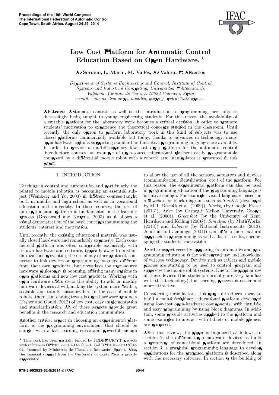 经过这次审查,本文的组织结构如下。在第二部分介绍了构建教育平台原型的不同开放硬件设备。在第3部分中,描述了为所提出的平台开发应用程序的图形编程语言以及必要的软件。在第4节中,介绍了原型平台的建立,第5节介绍了应用于平台的一些自动控制概念。最后,最后一部分起草了一些结论。
